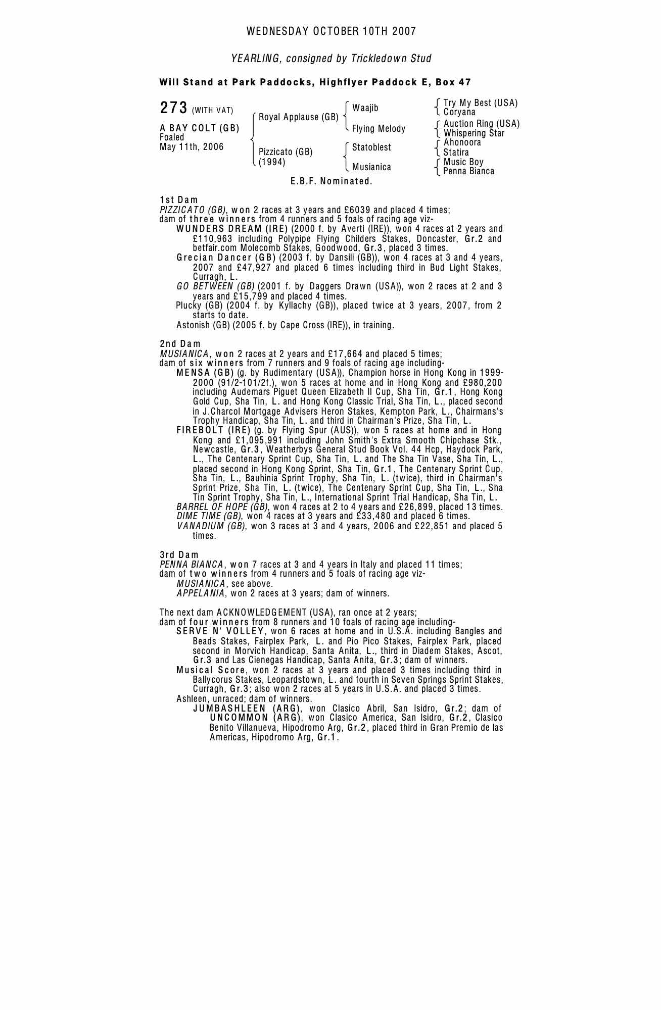 October Yearling Sale, Book 2 2004 lot 1060 F. by Dansili (GB) 2003, Trickledown Stud=>A Skiffington 100,000 gns