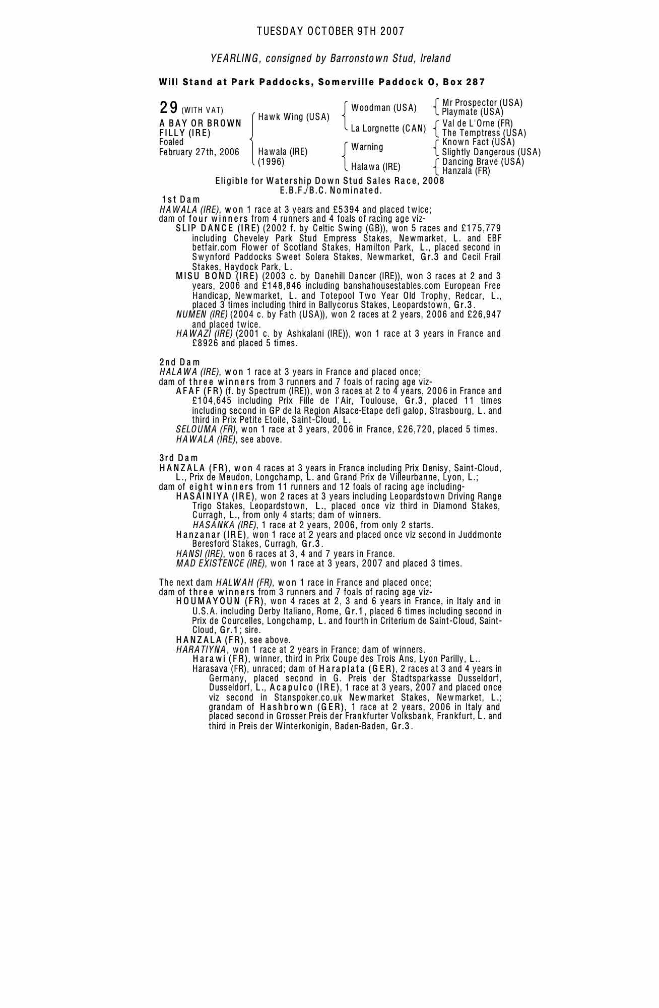 Consignor: Barronstown Stud, Ireland
