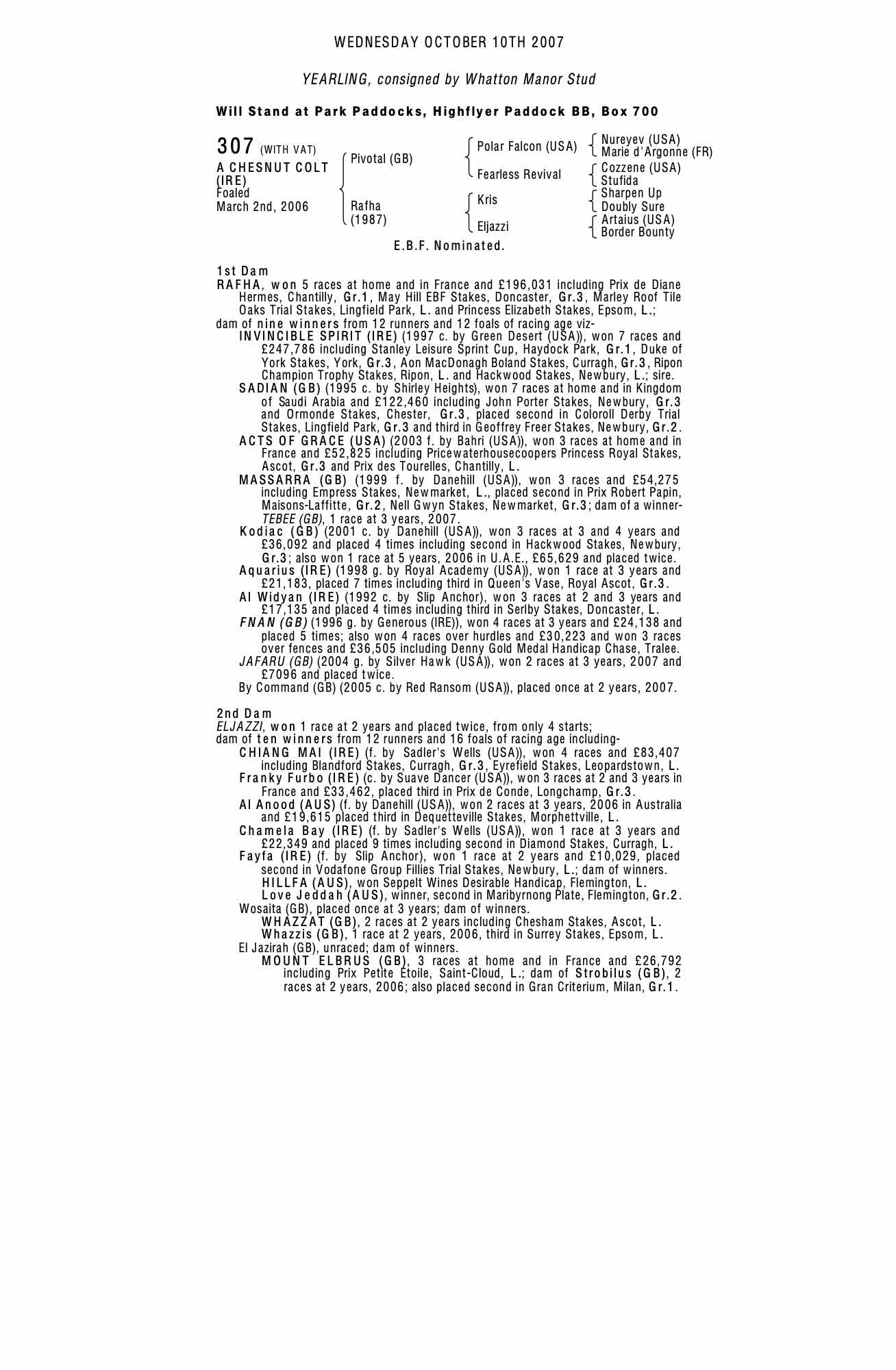 Consignor: Whatton Manor Stud