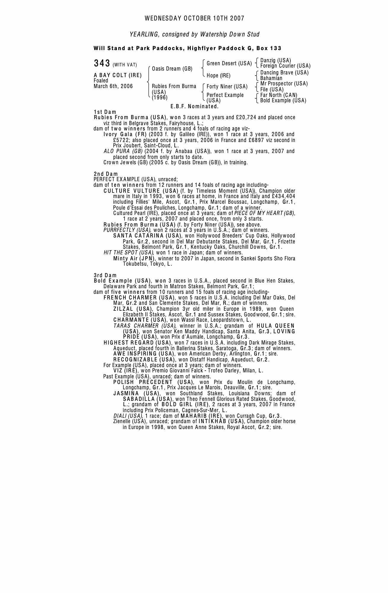 October Yearling Sale, Book 1 2006 lot 447 C. 2005, Yeomanstown Stud, Ireland=>Jeremy Noseda 190,000 gns