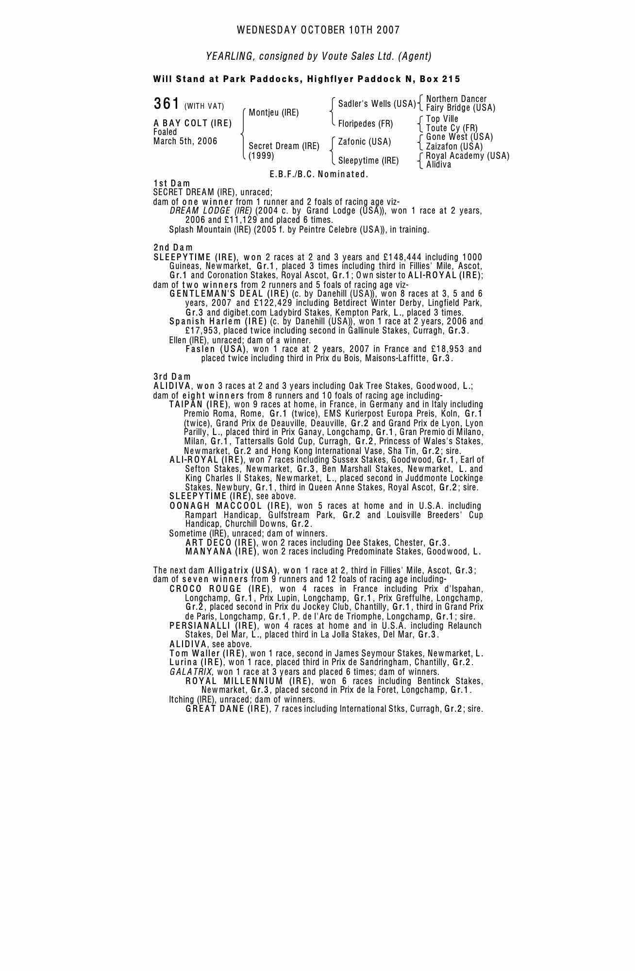 Consignor: Voute Sales Ltd. (Agent)