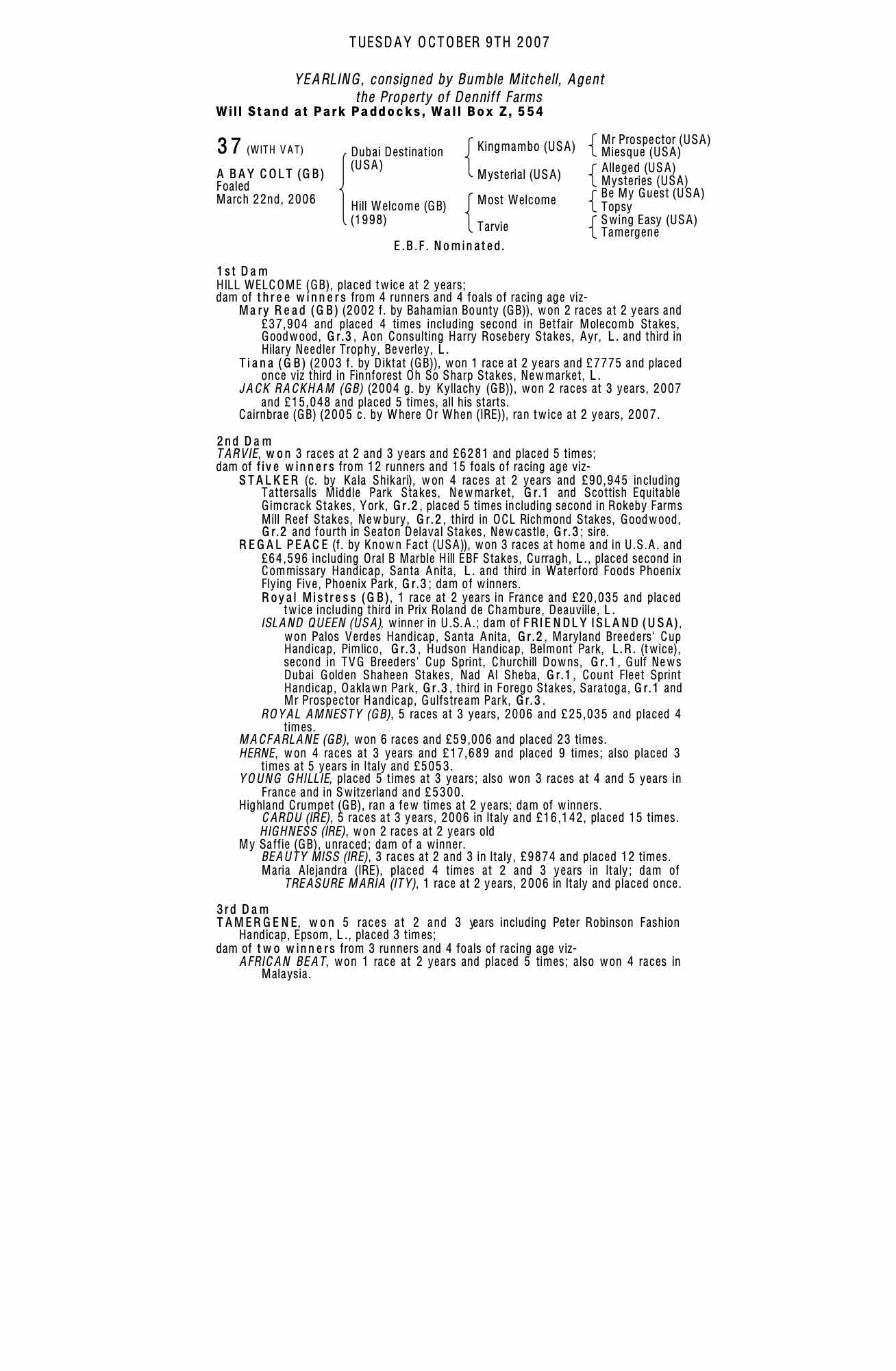 October Yearling Sale, Book 2 2006 lot 733 C. by Where Or When (IRE) 2005, Bumble Mitchell, Agent=>Kern/Lillingston Association 58,000 gns