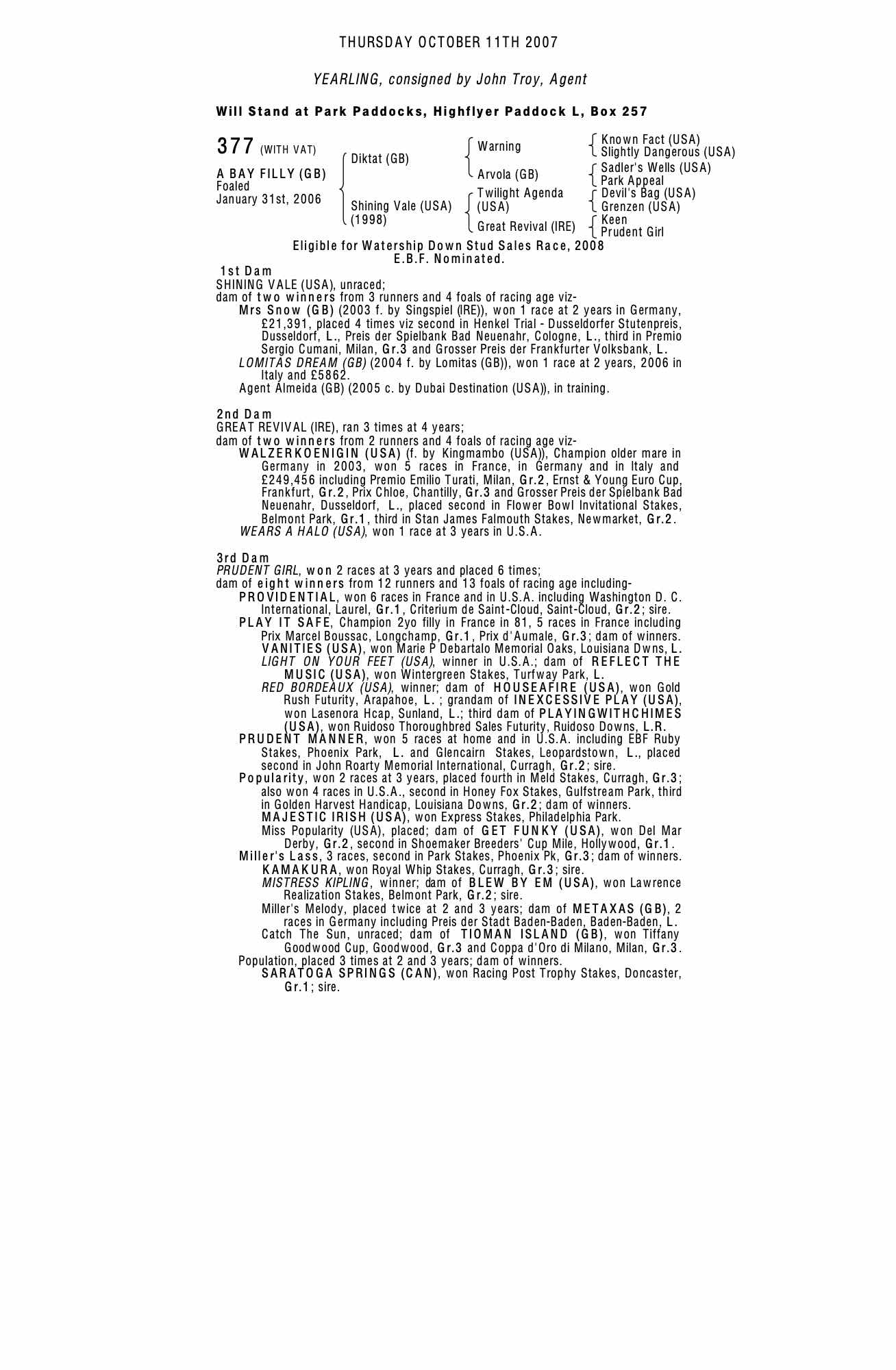 December Yearling Sale 2005 lot 86 F. by Lomitas (GB) 2004, Overbury Stud=>Manfred Hofer 22,000 gns