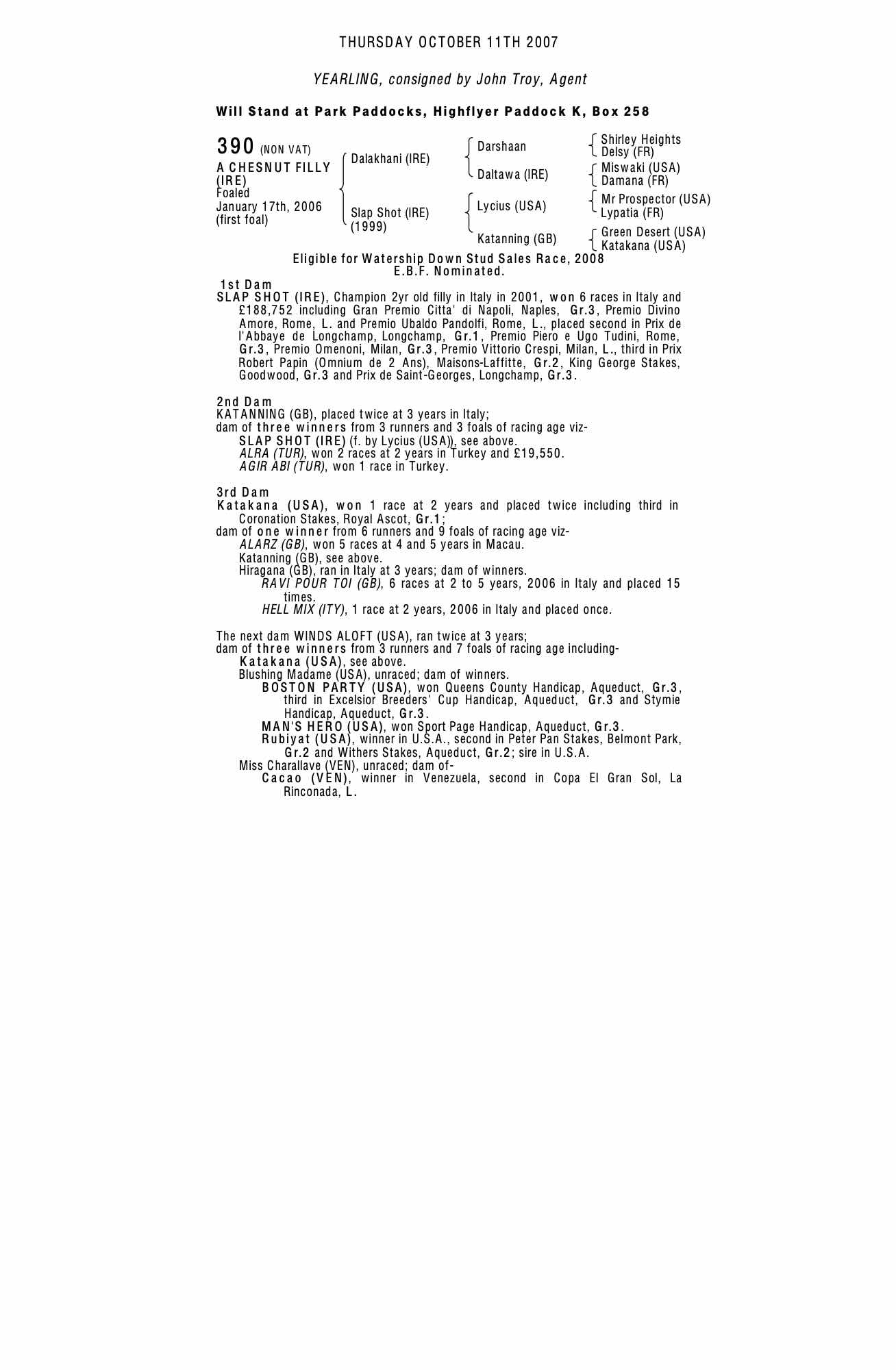 December Yearling Sale 2008 lot 192 C. by Shamardal (USA) 2007, John Troy, Agent=>John Ferguson Bloodstock 85,000 gns