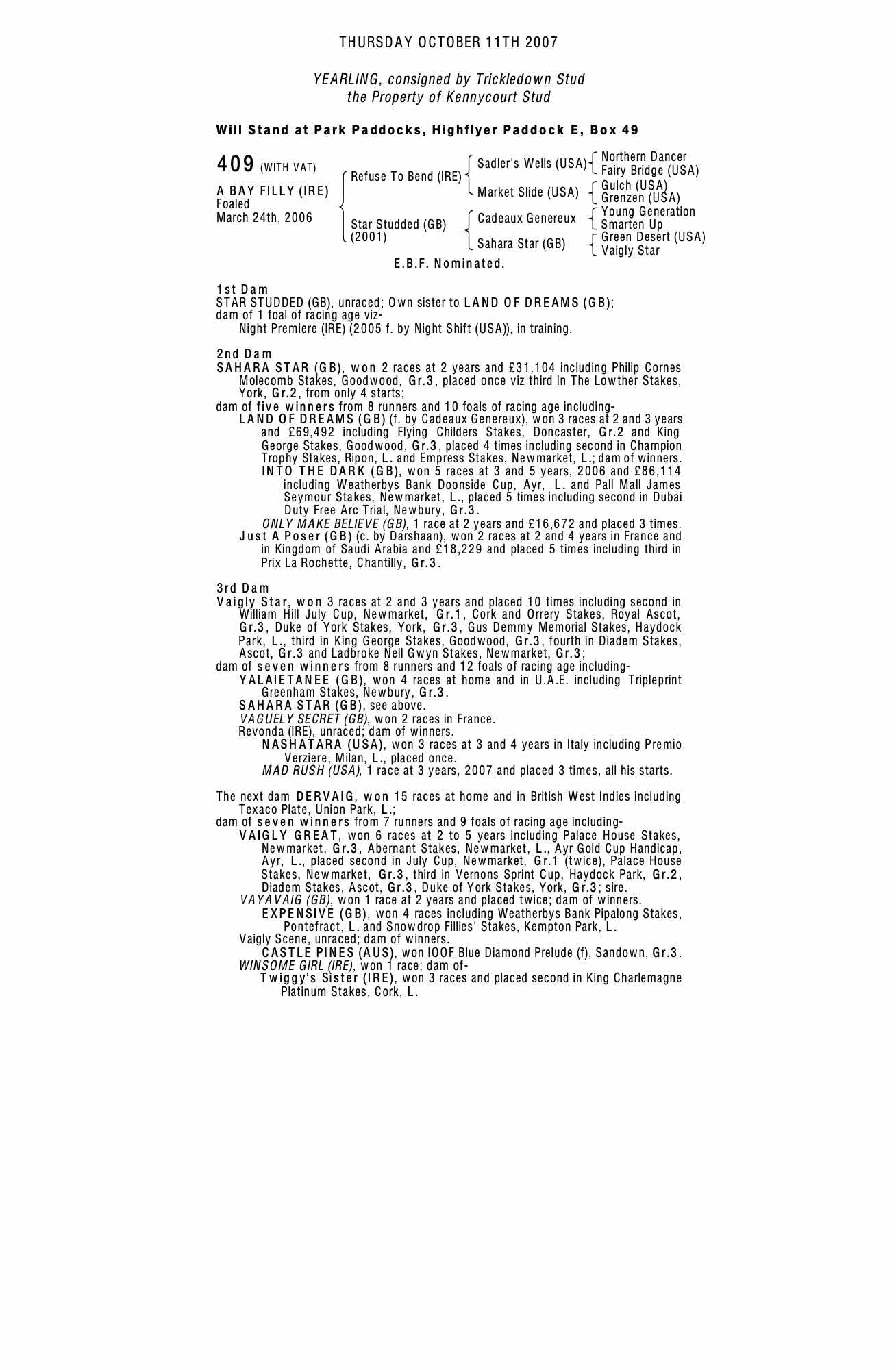 October Yearling Sale, Book 2 2006 lot 885 F. by Night Shift (USA) 2005, Moorpark Stud, Ireland=>JC Bloodstock 46,000 gns