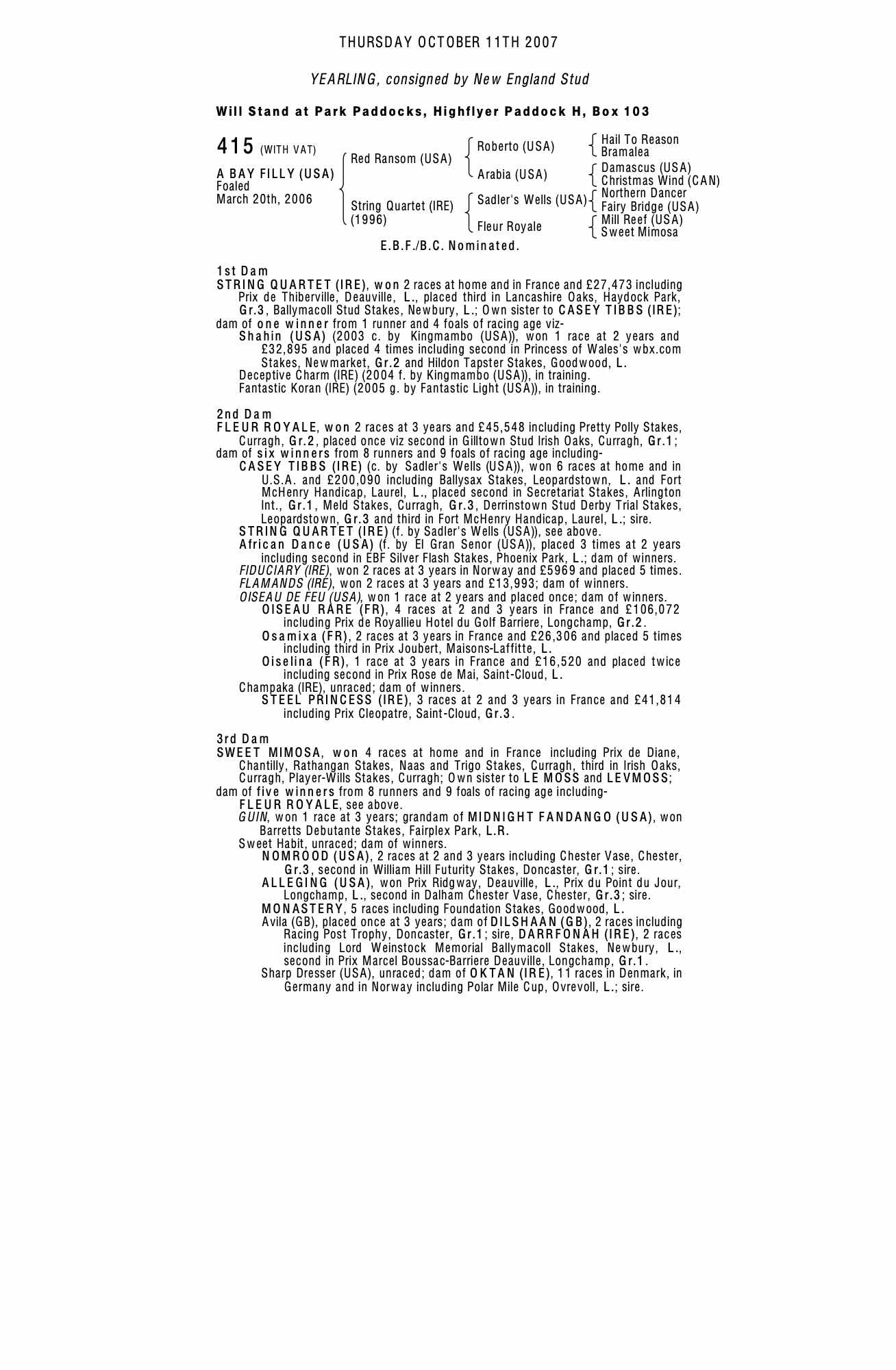 December Yearling Sale 2006 lot 282 G. by Fantastic Light (USA) 2005, Mullaboden Farms Ltd. Ireland=>McKeever St Lawrence 3,000 gns