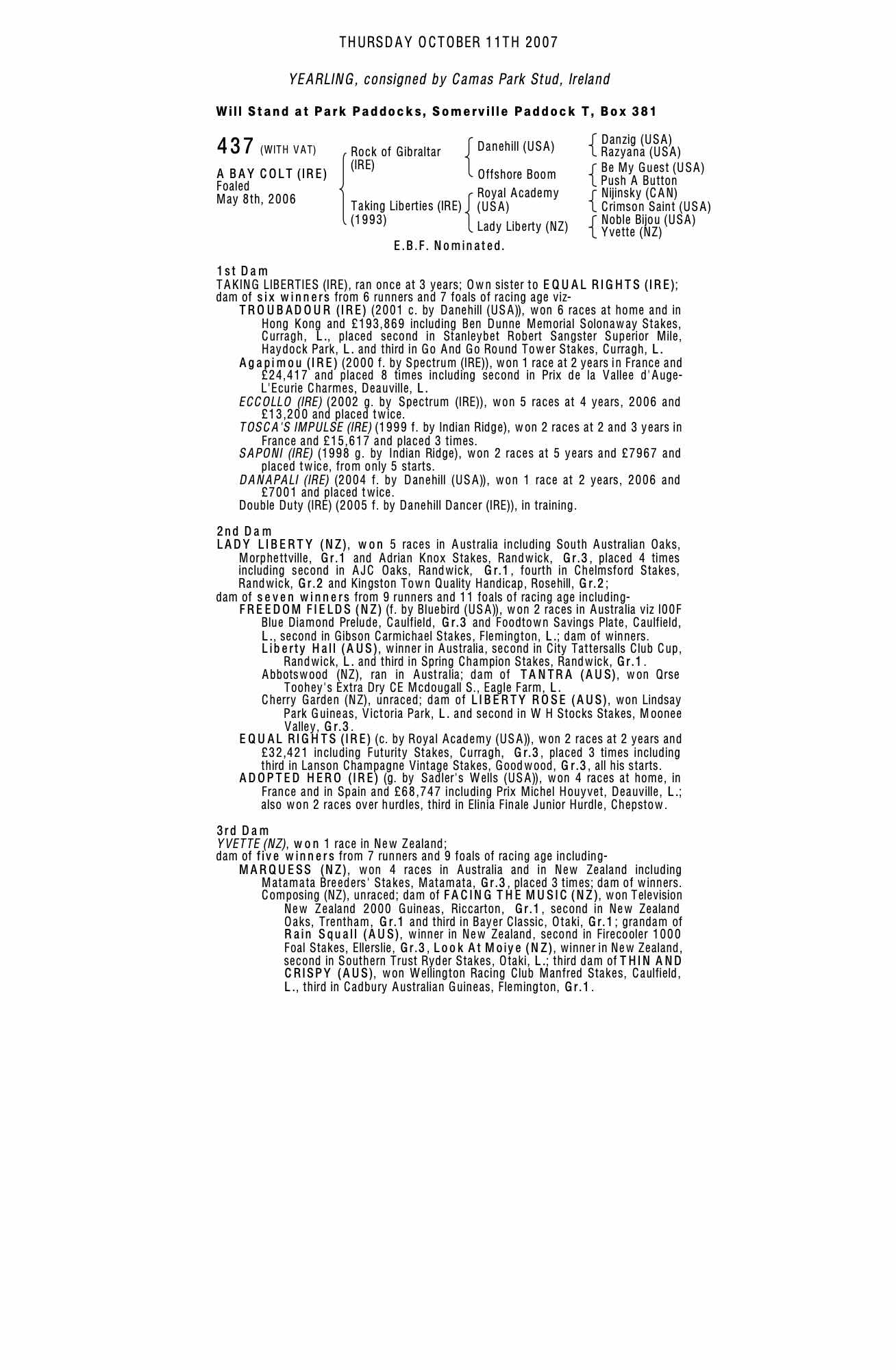 October Yearling Sale, Book 1 2005 lot 641 F. by Danehill (USA) 2004, Voute Sales, Agent=>De Burgh/Farrington 65,000 gns