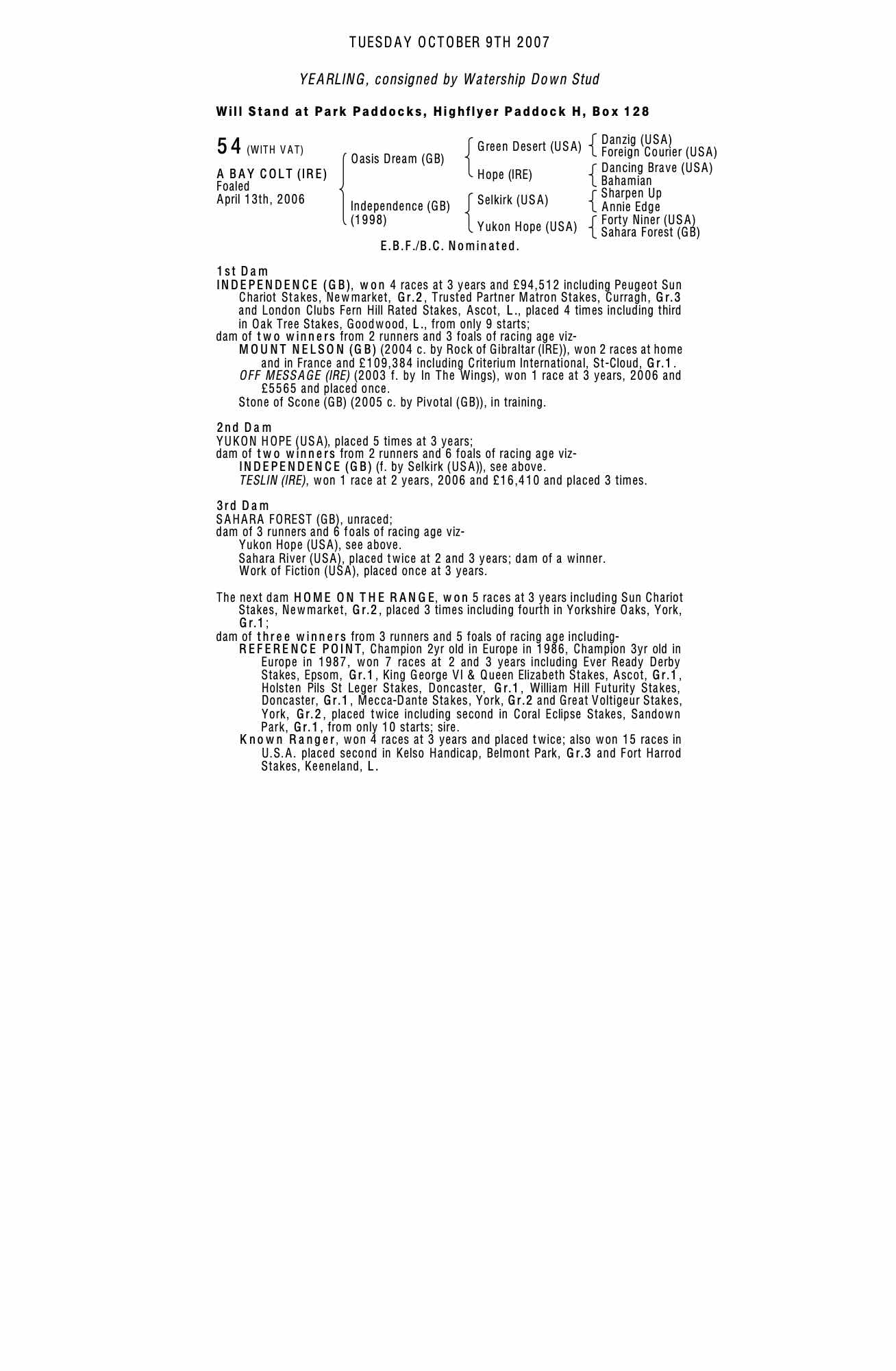 Consignor: Watership Down Stud