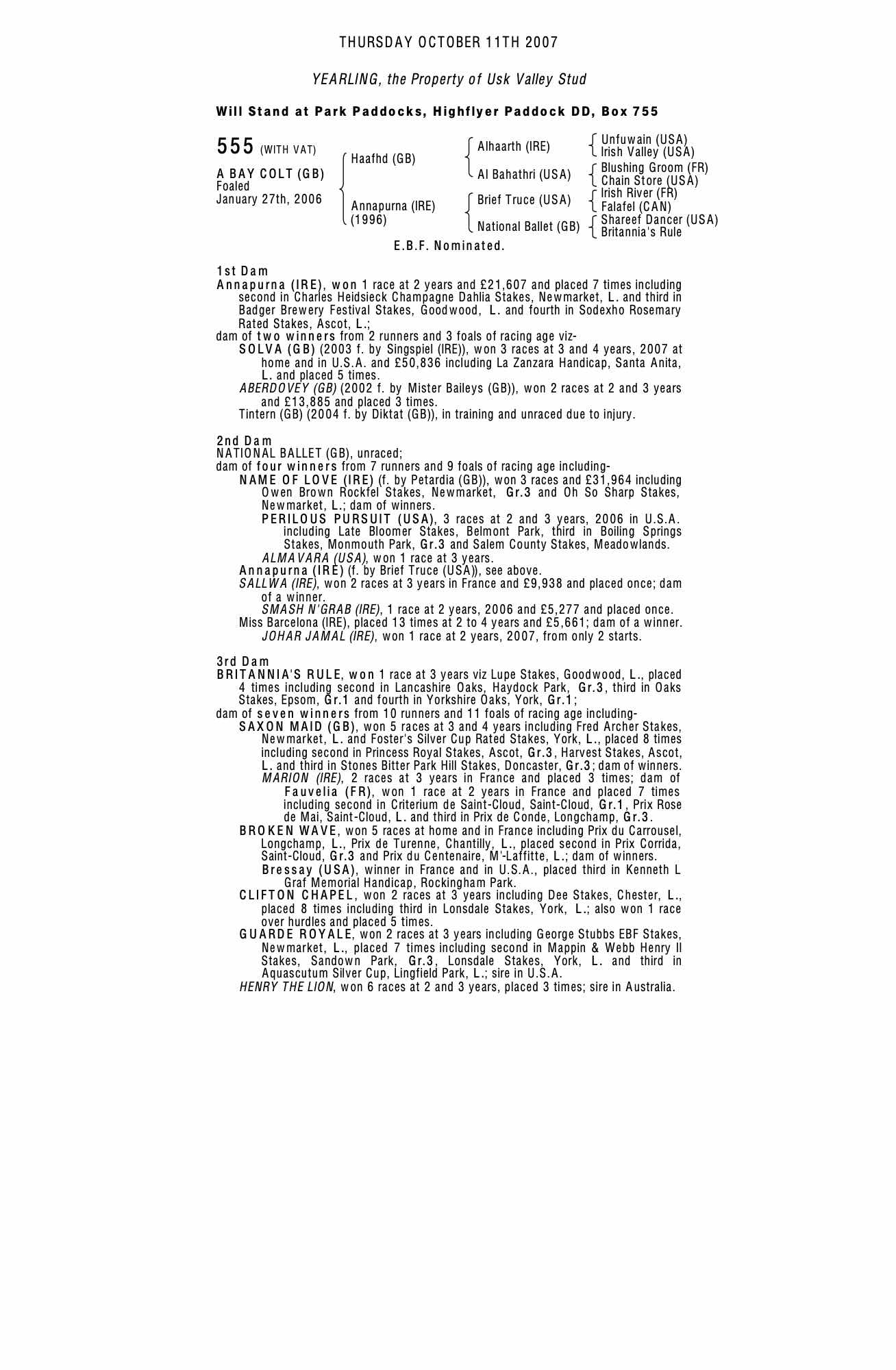 October Yearling Sale, Book 1 2010 lot 71 F. by Singspiel (IRE) 2009, Usk Valley Stud=>Vendor 50,000 gns