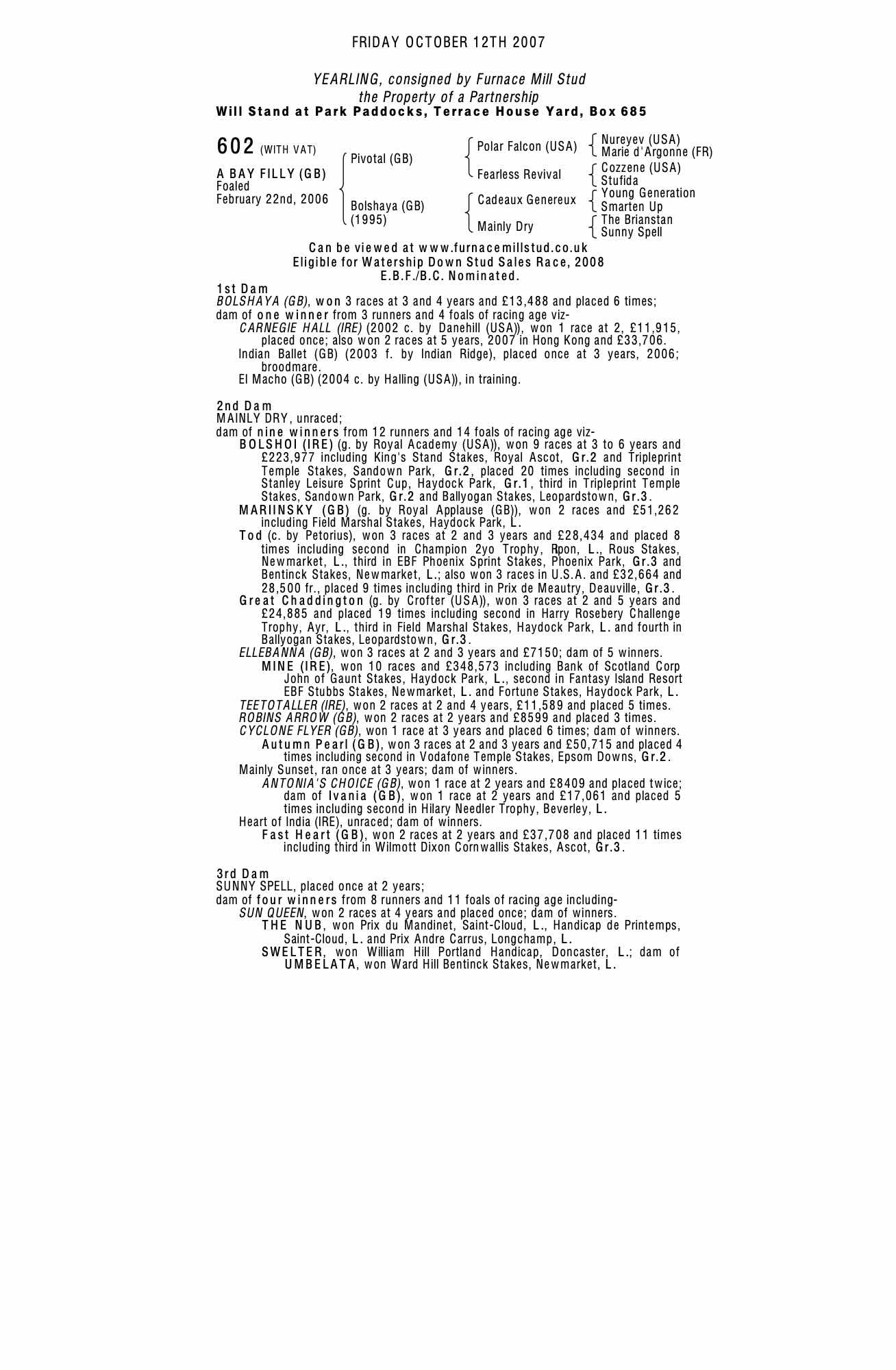 October Yearling Sale 2002 lot 201 F. by Bluebird (USA) 2001, Furnace Mill Stud=>Larry Stratton 58,000 gns