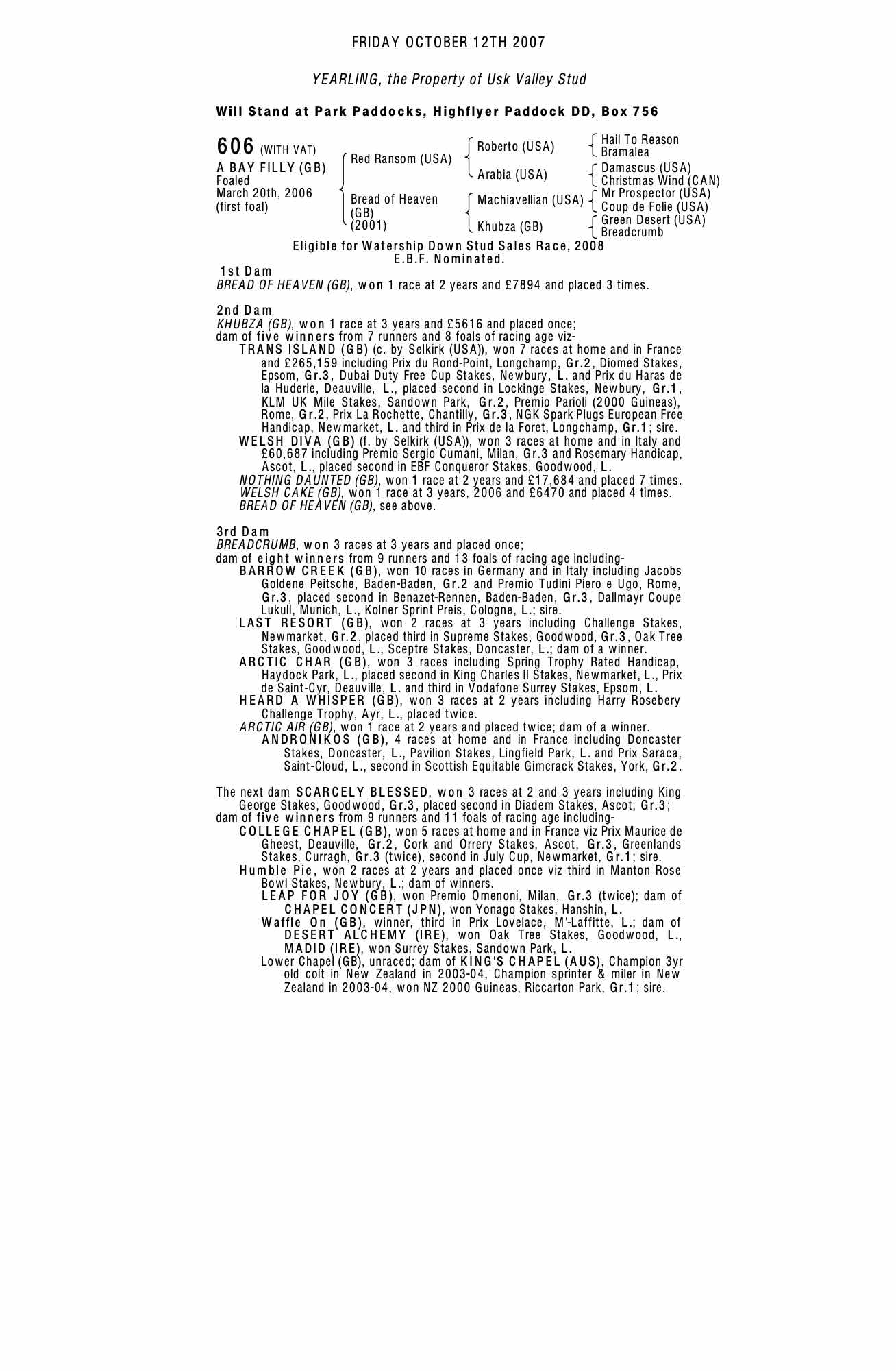 Consignor: Usk Valley Stud