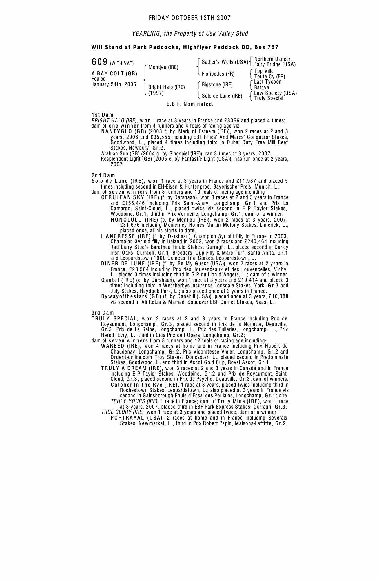 October Yearling Sale, Book 1 2009 lot 280 F. by Halling (USA) 2008, Usk Valley Stud=>Vendor 72,000 gns