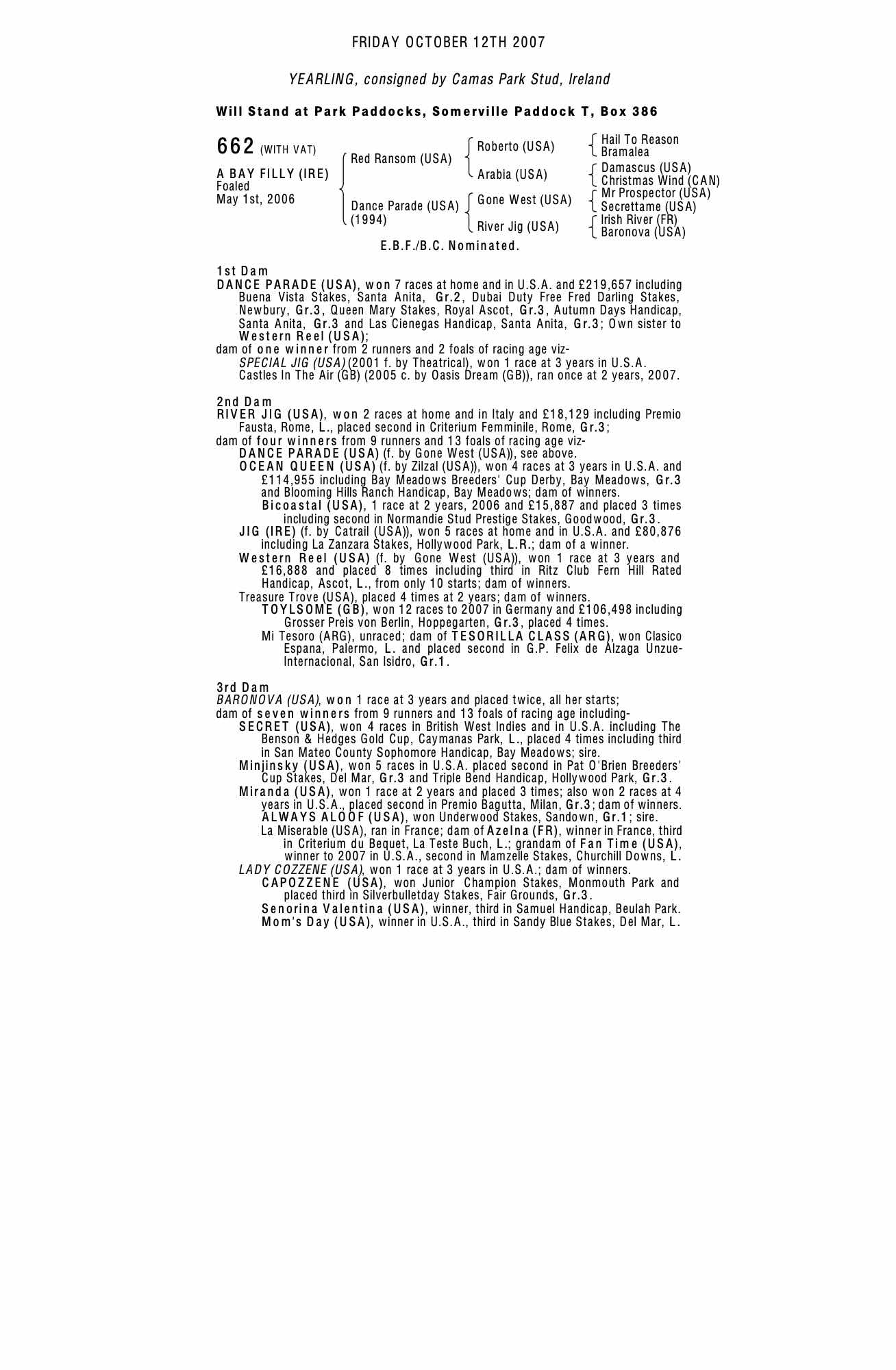 December Foal Sale 2007 lot 1271 F. by Danehill Dancer (IRE) 2007, Swettenham Stud=>Tweenhills/Rathmore 42,000 gns