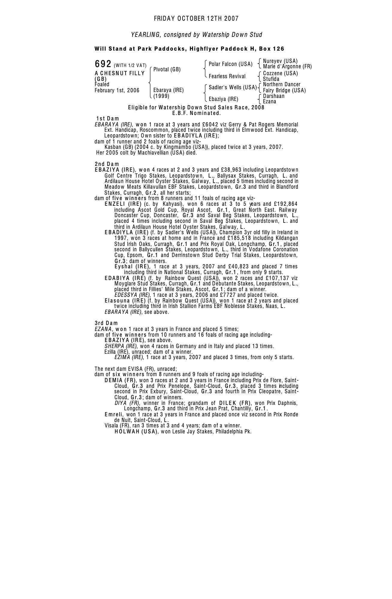 July Sale 2007 lot 532 Kasban (GB) (C. by Kingmambo (USA)), Ed Dunlop Racing Ltd.=>C De Moubray 85,000 gns