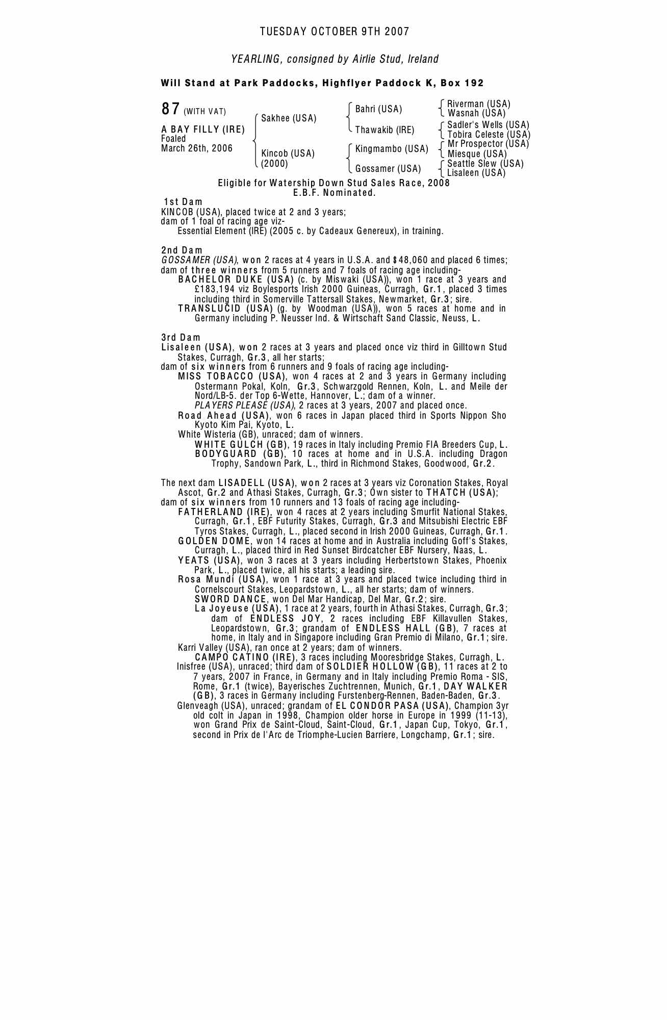 October Yearling Sale, Book 1 2008 lot 603 C. by Oasis Dream (GB) 2007, Airlie Stud, Ireland=>Charles Egerton Bloodstock 65,000 gns