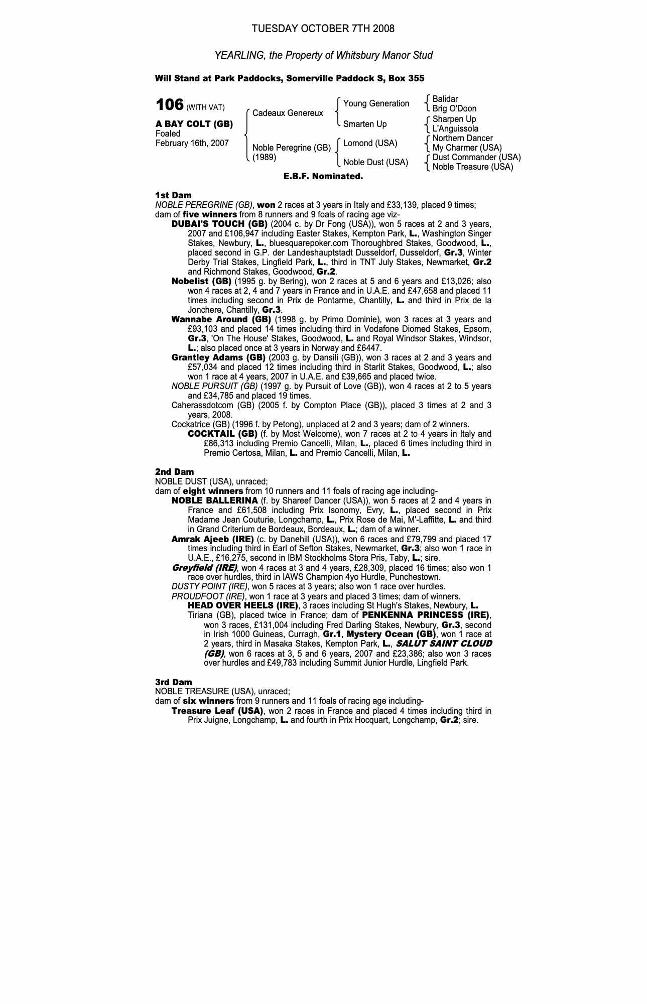October Yearling Sale, Book 2 2006 lot 1407 F. by Compton Place (GB) 2005, Caherass Stud, Ireland=>Geoffrey Howson Bloodstock 100,000 gns