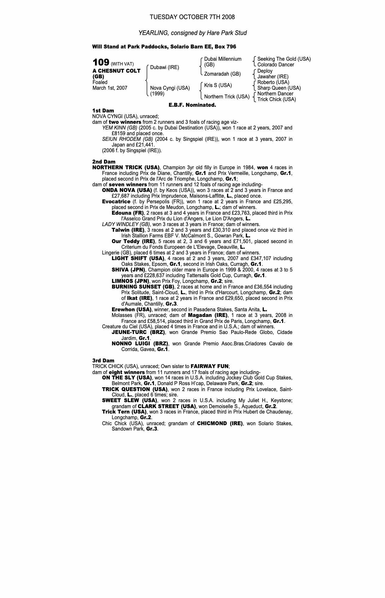 October Yearling Sale, Book 2 2007 lot 928 F. by Singspiel (IRE) 2006, Hare Park Stud=>Vendor 17,000 gns
