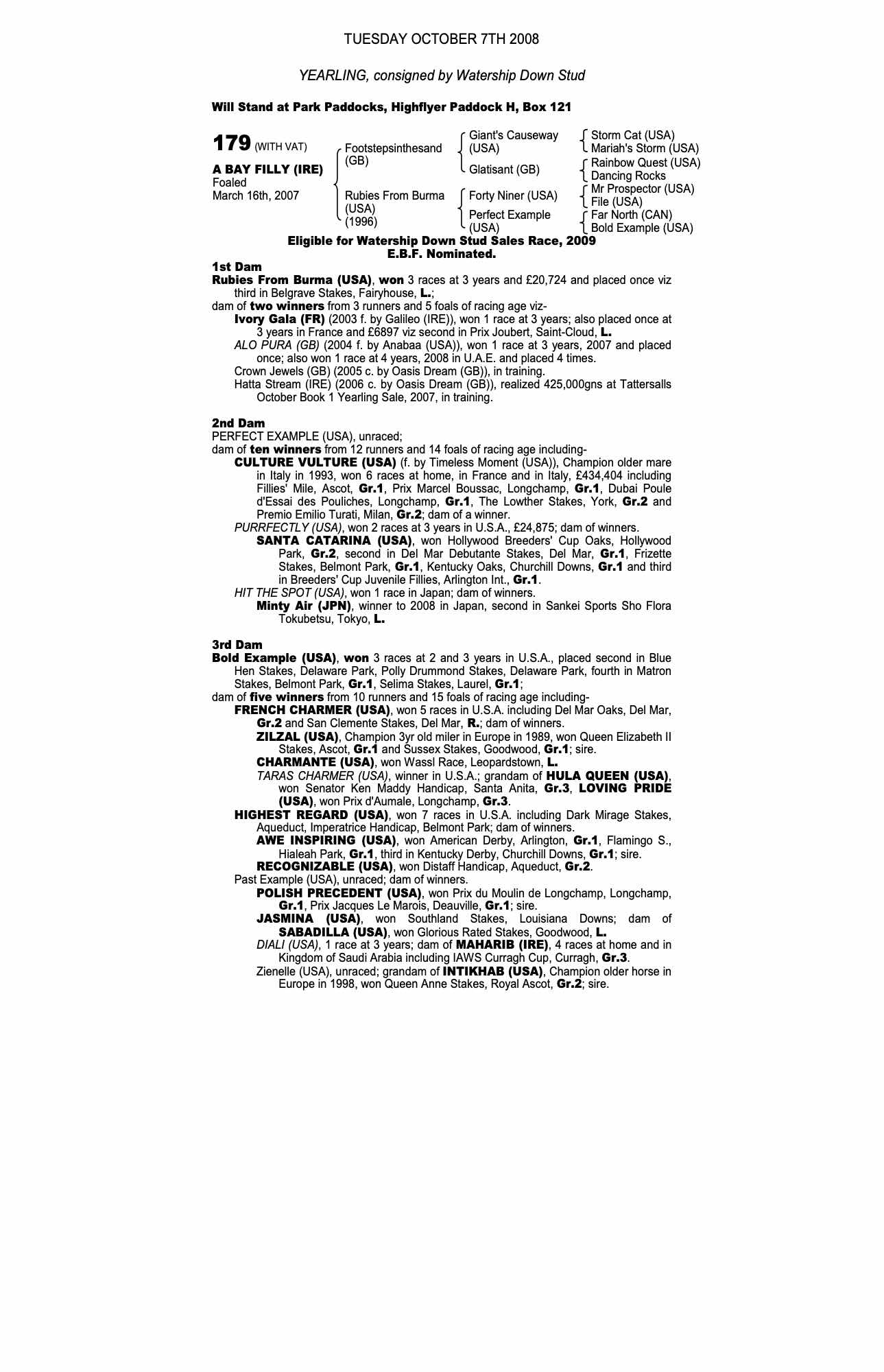October Yearling Sale, Book 2 2012 lot 1006 F. by Selkirk (USA) 2011, Watership Down Stud=>Ferrybank Properties 33,000 gns