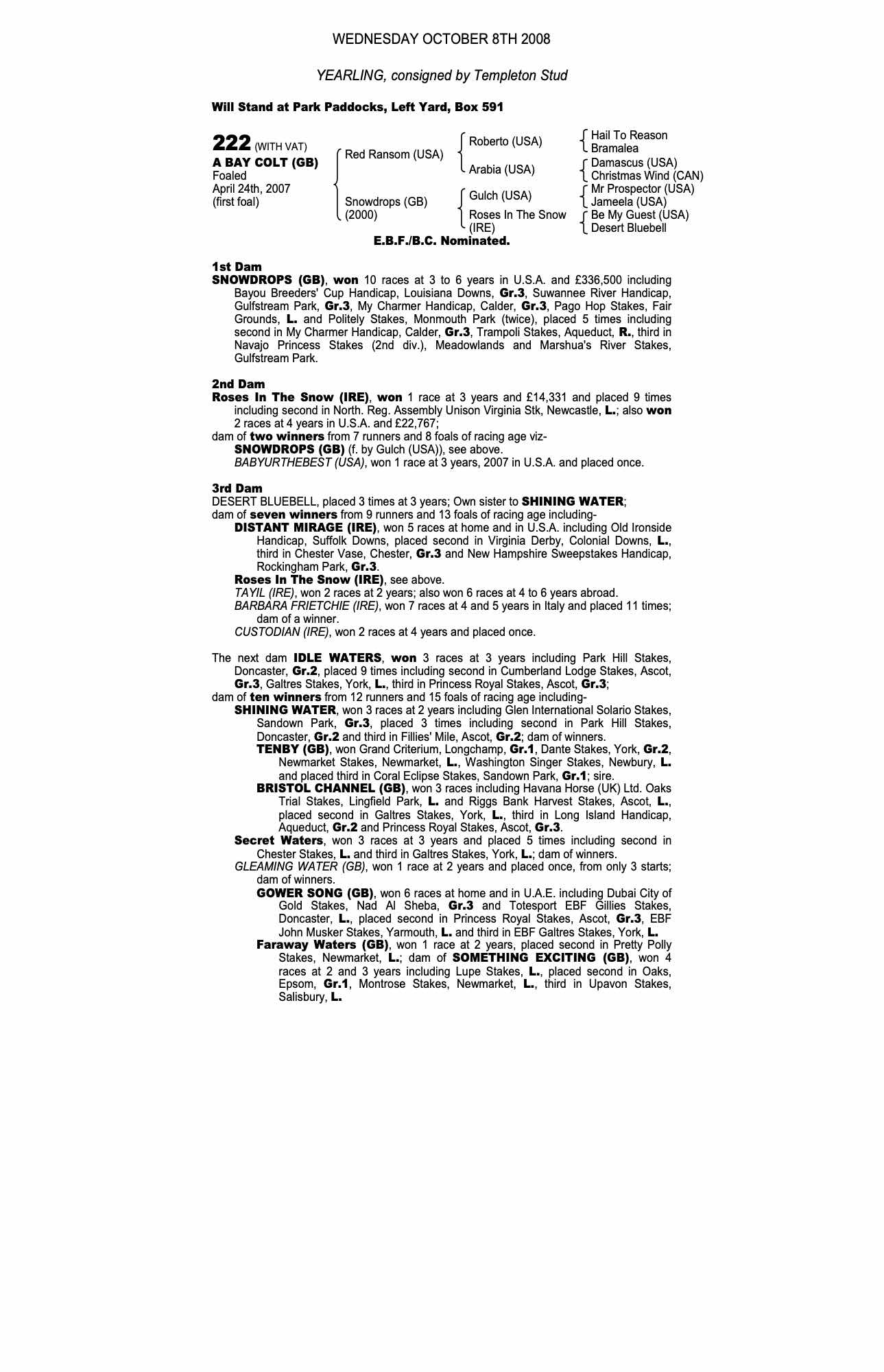 October Yearling Sale, Book 1 2009 lot 85 C. by Dansili (GB) 2008, Templeton Stud=>G Howard-Spink 30,000 gns