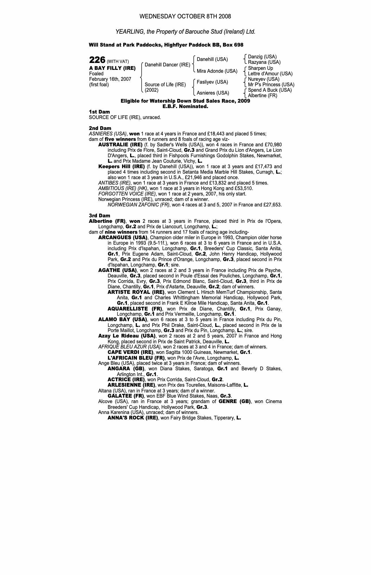 October Yearling Sale, Book 2 2009 lot 790 F. by Refuse To Bend (IRE) 2008, Barouche Stud (Ireland) Ltd.=>Vendor 42,000 gns
