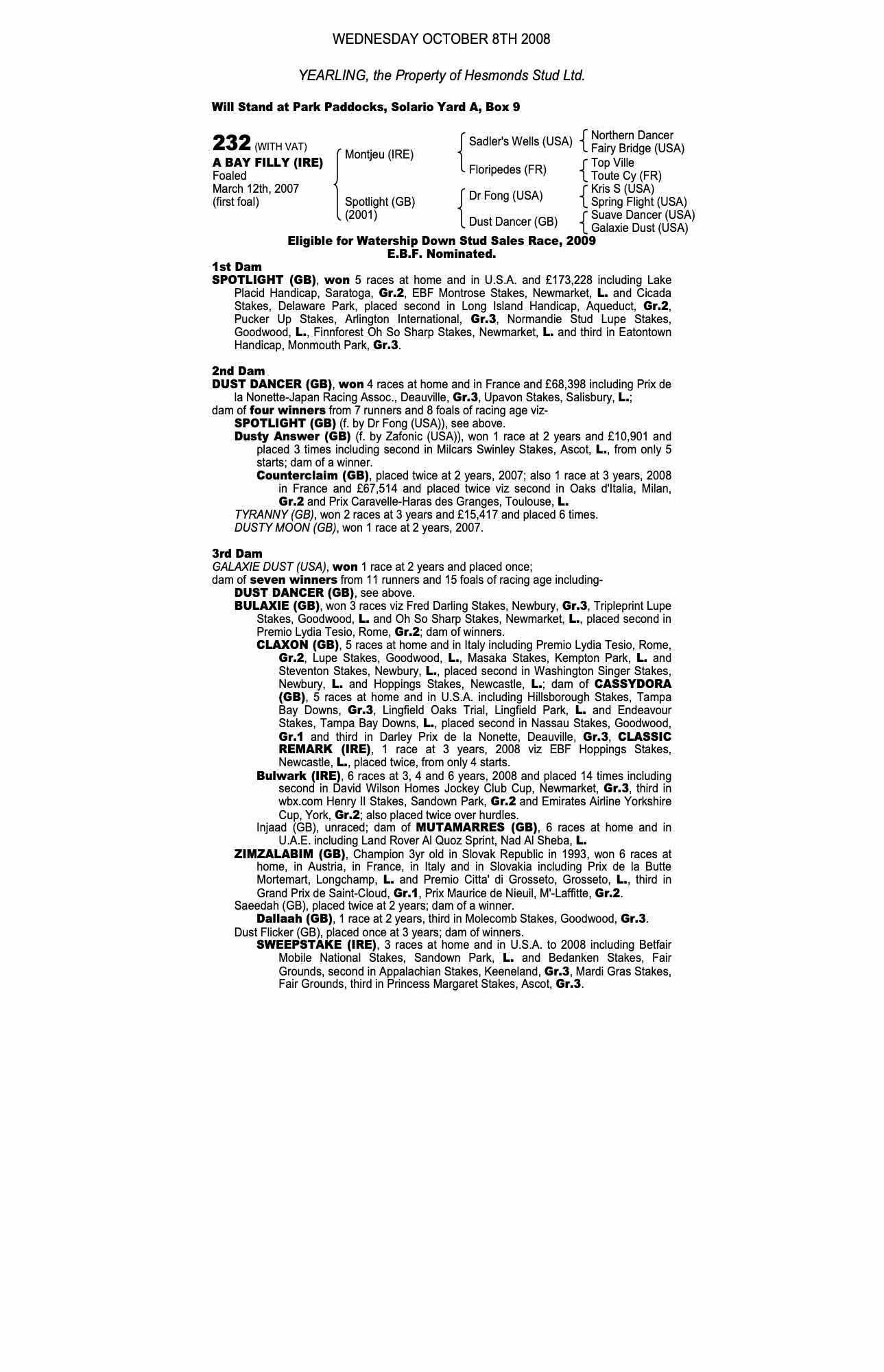 October Yearling Sale, Book 3 2012 lot 1738 F. by Shirocco (GER) 2011, Lavington Stud=>Vendor 10,000 gns