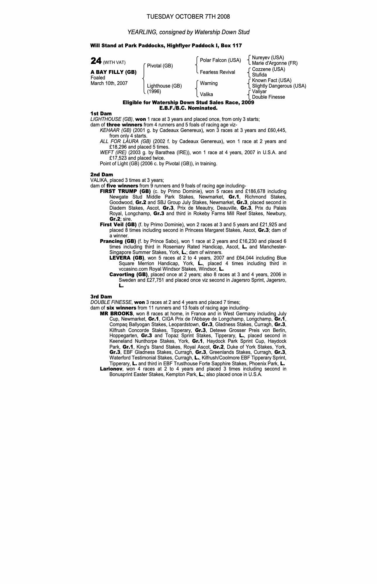 October Yearling Sale, Book 1 2007 lot 128 C. 2006, Watership Down Stud=>Highflyer Bloodstock 90,000 gns
