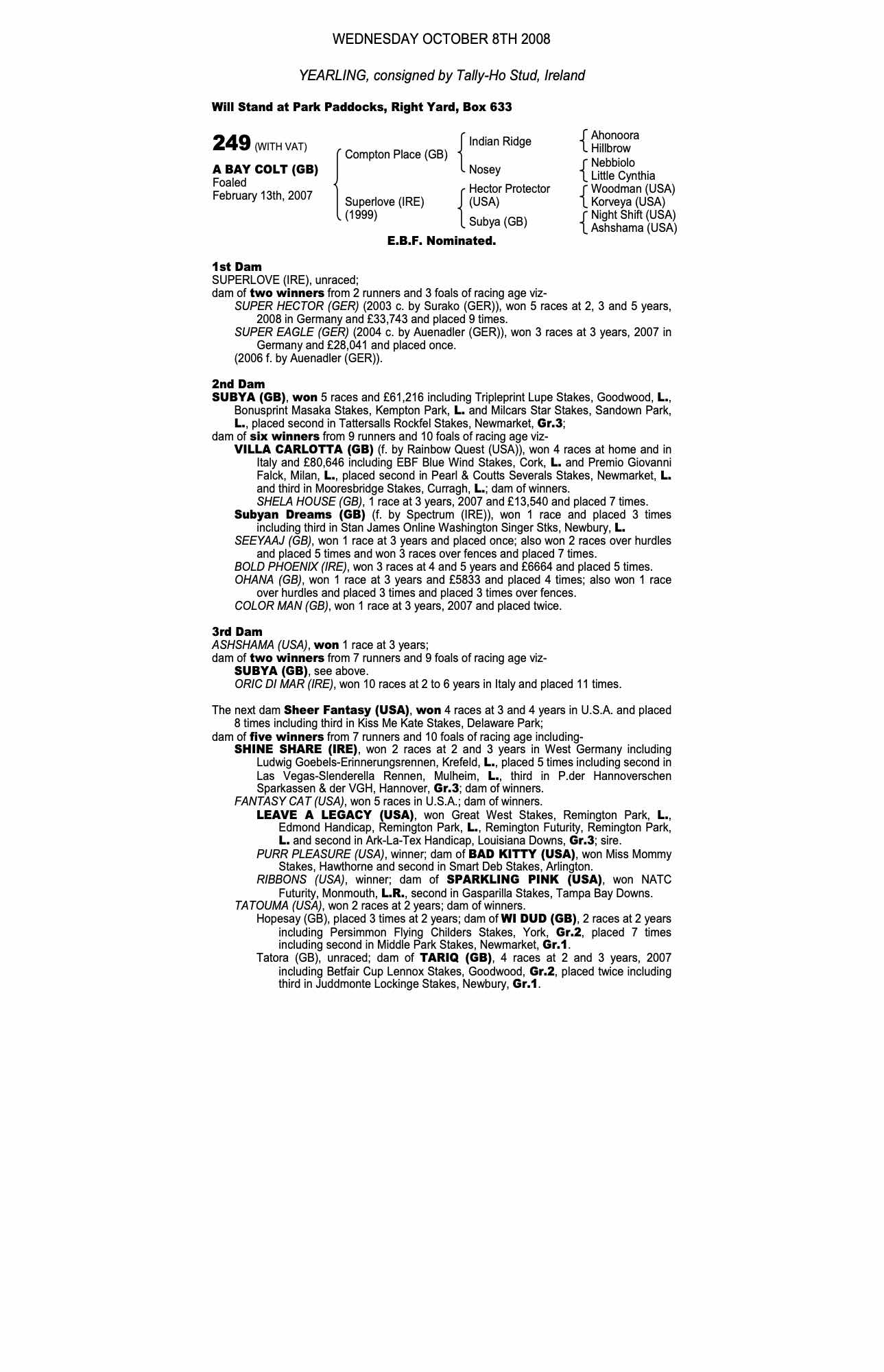 Consignor: Tally-Ho Stud, Ireland