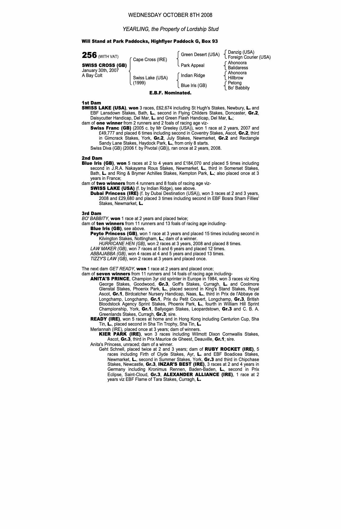 Online Charity Auction of Stallion Nominations lot 66 A Nomination to Swiss Spirit (GB) (H. by Invincible Spirit (IRE)), =>Bidding Closed £1,000