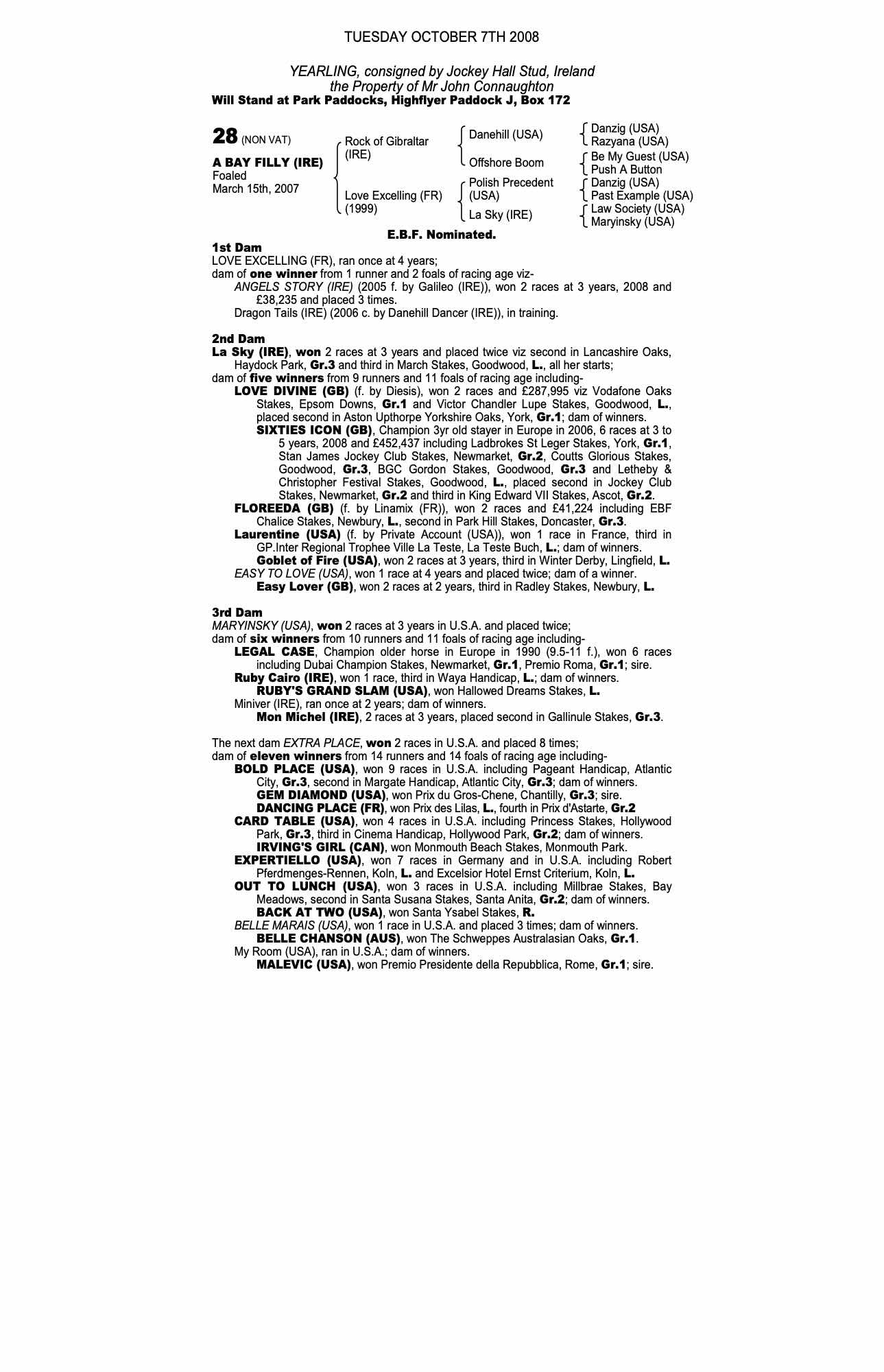 Consignor: Jockey Hall Stud, Ireland
