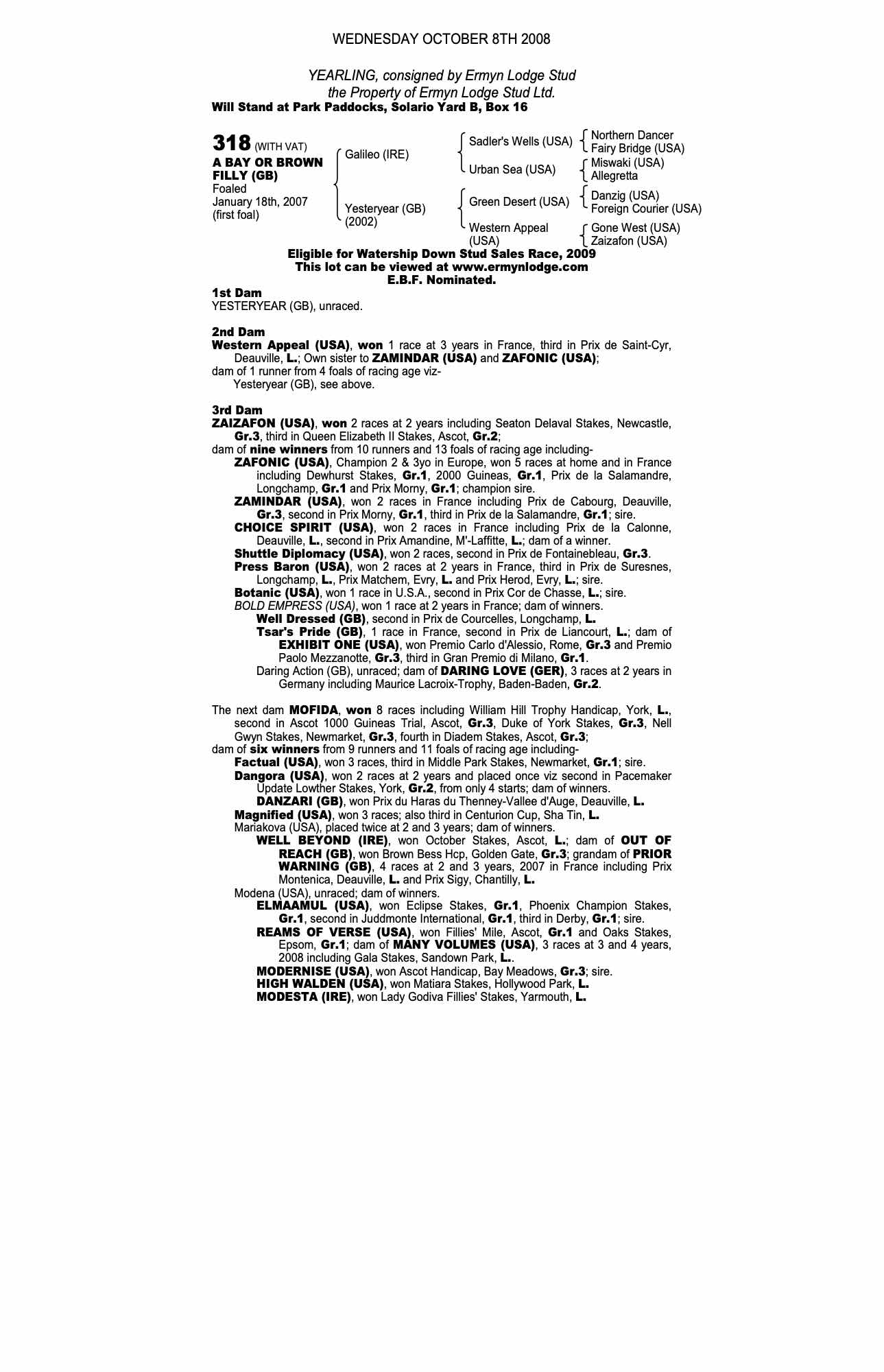 October Yearling Sale, Book 2 2012 lot 1244 F. by Lawman (FR) 2011, Ermyn Lodge Stud=>Daniele Moroni 20,000 gns