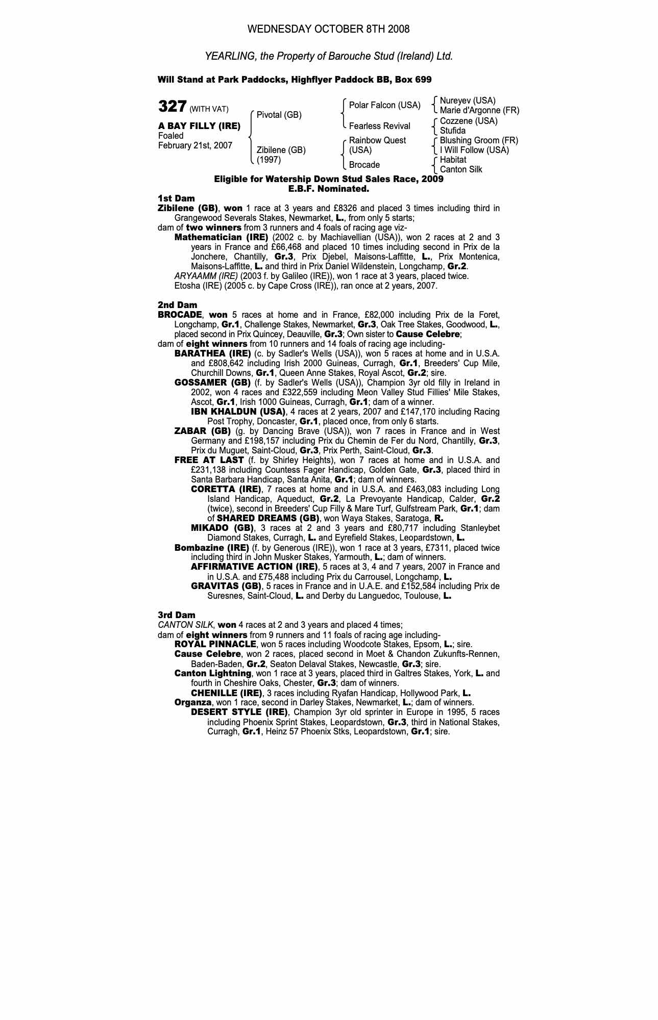October Yearling Sale, Book 1 2009 lot 192 C. by Danehill Dancer (IRE) 2008, Barouche Stud (Ireland) Ltd.=>John Magnier 160,000 gns