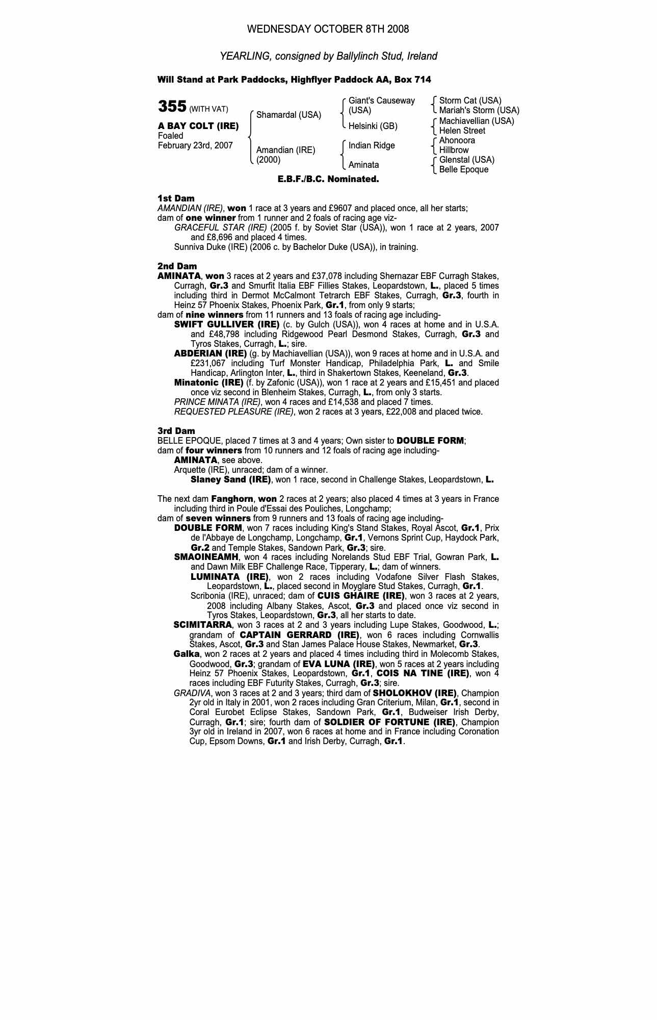 October Yearling Sale, Book 1 2007 lot 544 C. by Bachelor Duke (USA) 2006, Kildaragh Stud, Ireland (Agent)=>Jeremy Brummitt 35,000 gns