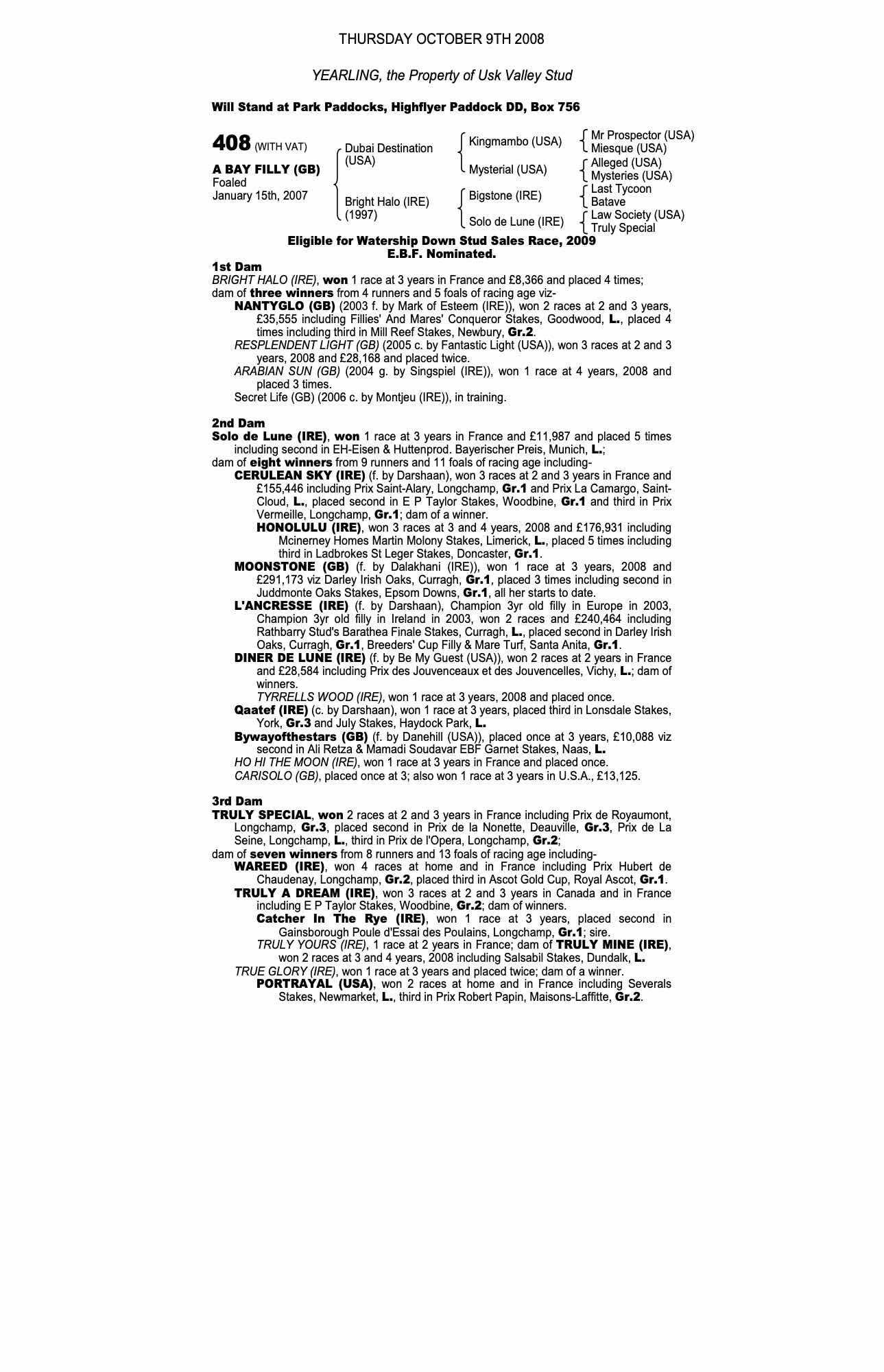 October Yearling Sale, Book 1 2009 lot 280 F. by Halling (USA) 2008, Usk Valley Stud=>Vendor 72,000 gns