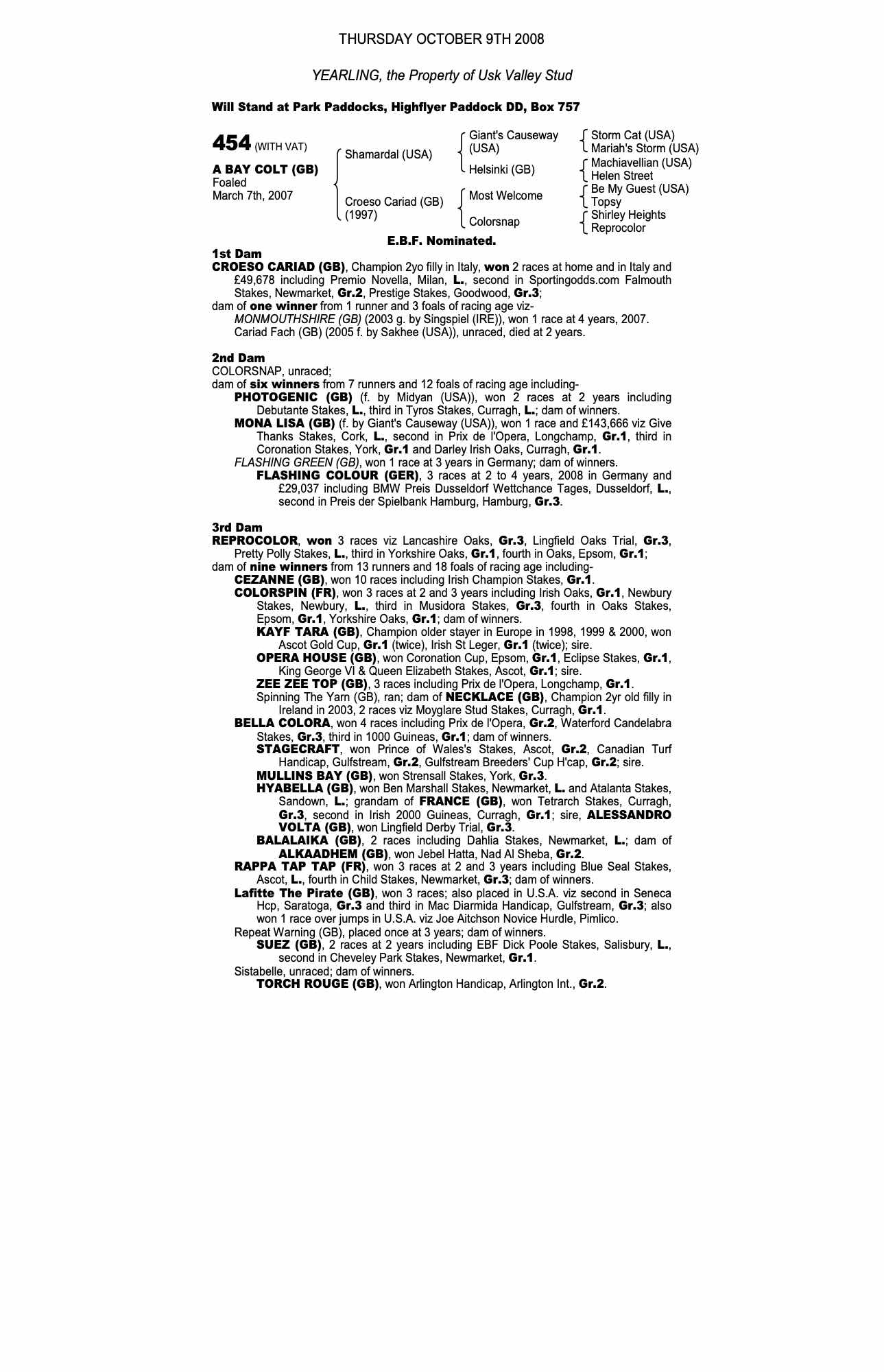 Consignor: Usk Valley Stud