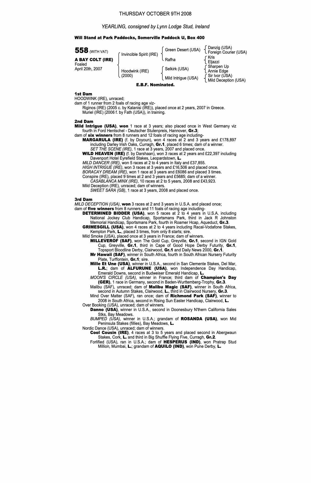 December Foal Sale 2007 lot 1290, Airlie Stud, Ireland=>Margaret O'Toole 42,000 gns