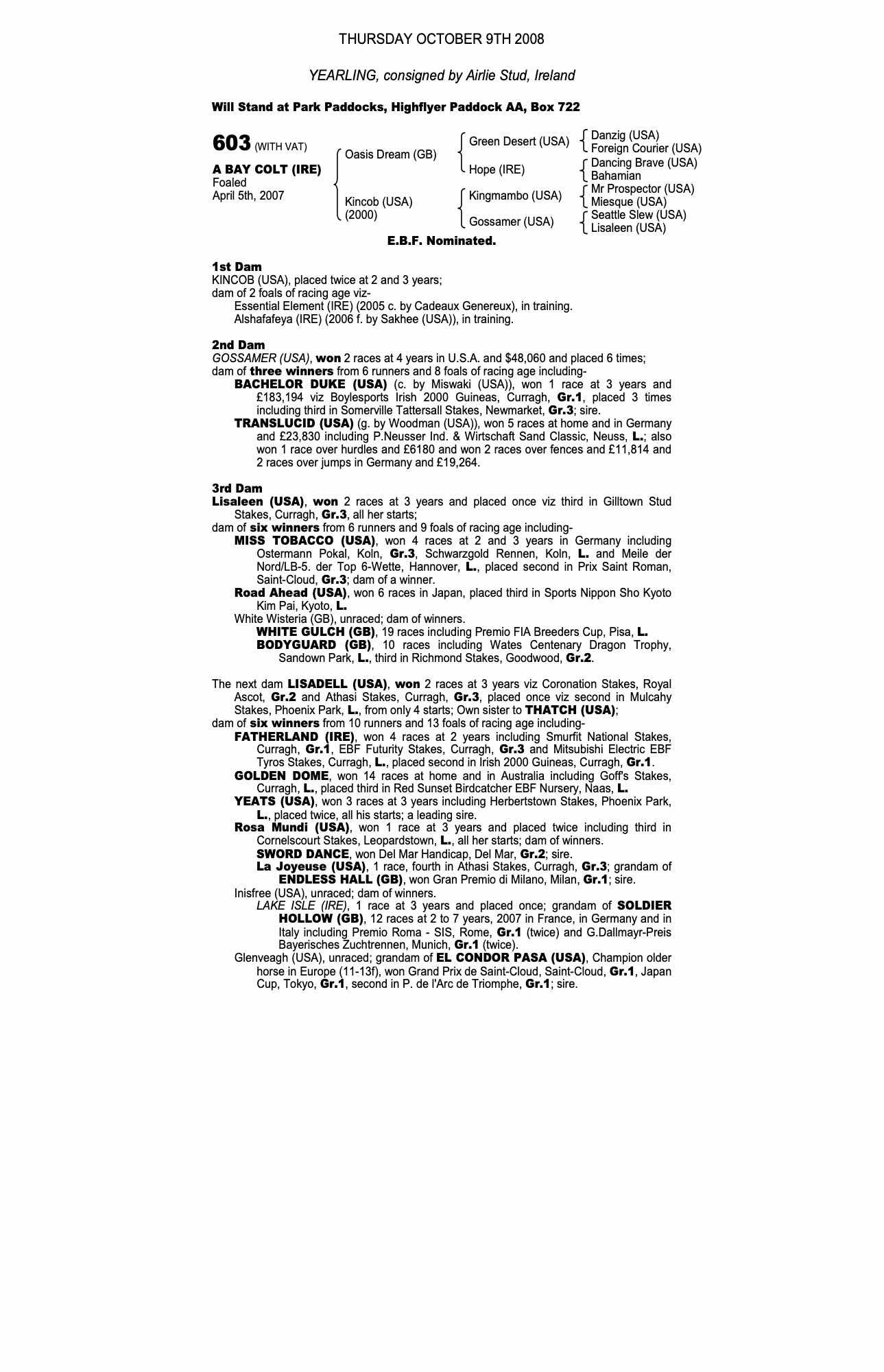 October Yearling Sale, Book 1 2007 lot 87 F. by Sakhee (USA) 2006, Airlie Stud, Ireland=>Shadwell Estate Company 140,000 gns