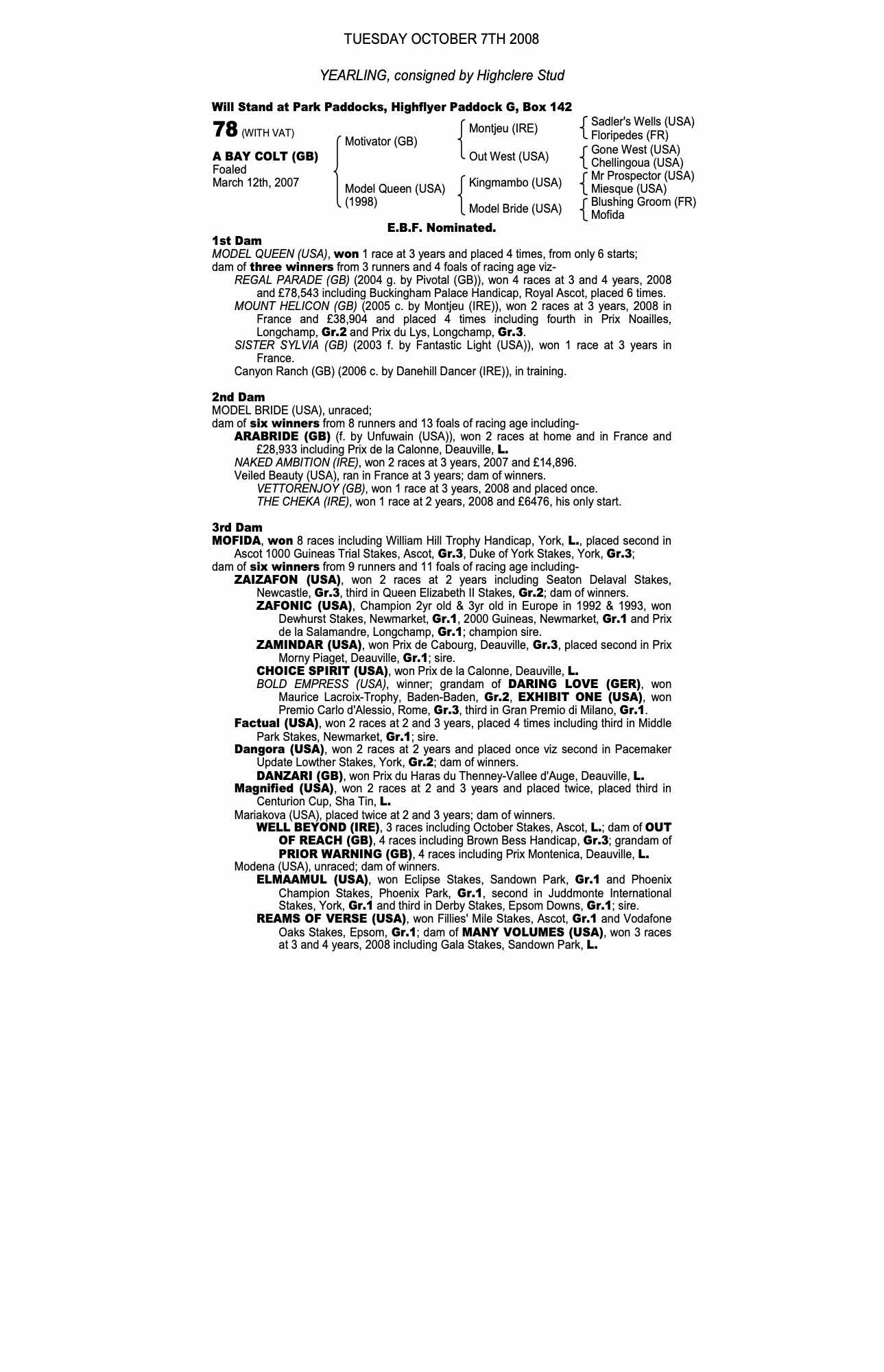 October Yearling Sale, Book 1 2004 lot 321 F. by Fantastic Light (USA) 2003, Jockey Hall Stud, Ireland (Agent)=>Lot Not Sold 38,000 gns