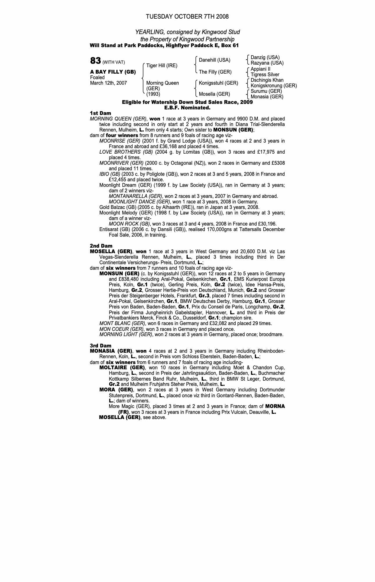 Autumn Horses in Training Sale 2009 lot 148 Hill Tribe (GB) (F.), Findlay and Bloom, Part of a Dispersal=>Kern/Lillingston Association 30,000 gns
