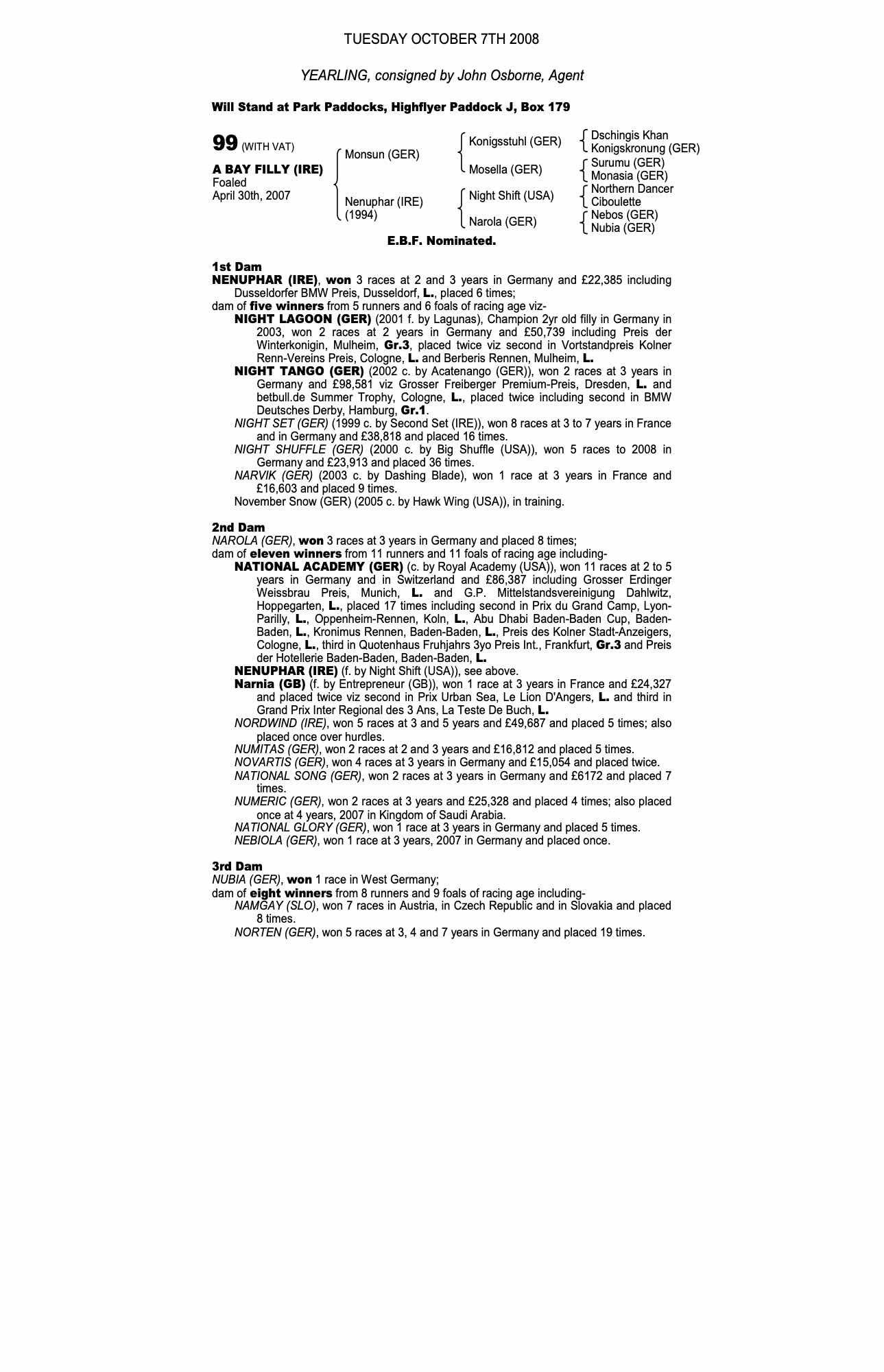 December Yearling Sale 2008 lot 184, The Castlebridge Consignment=>Vendor 58,000 gns