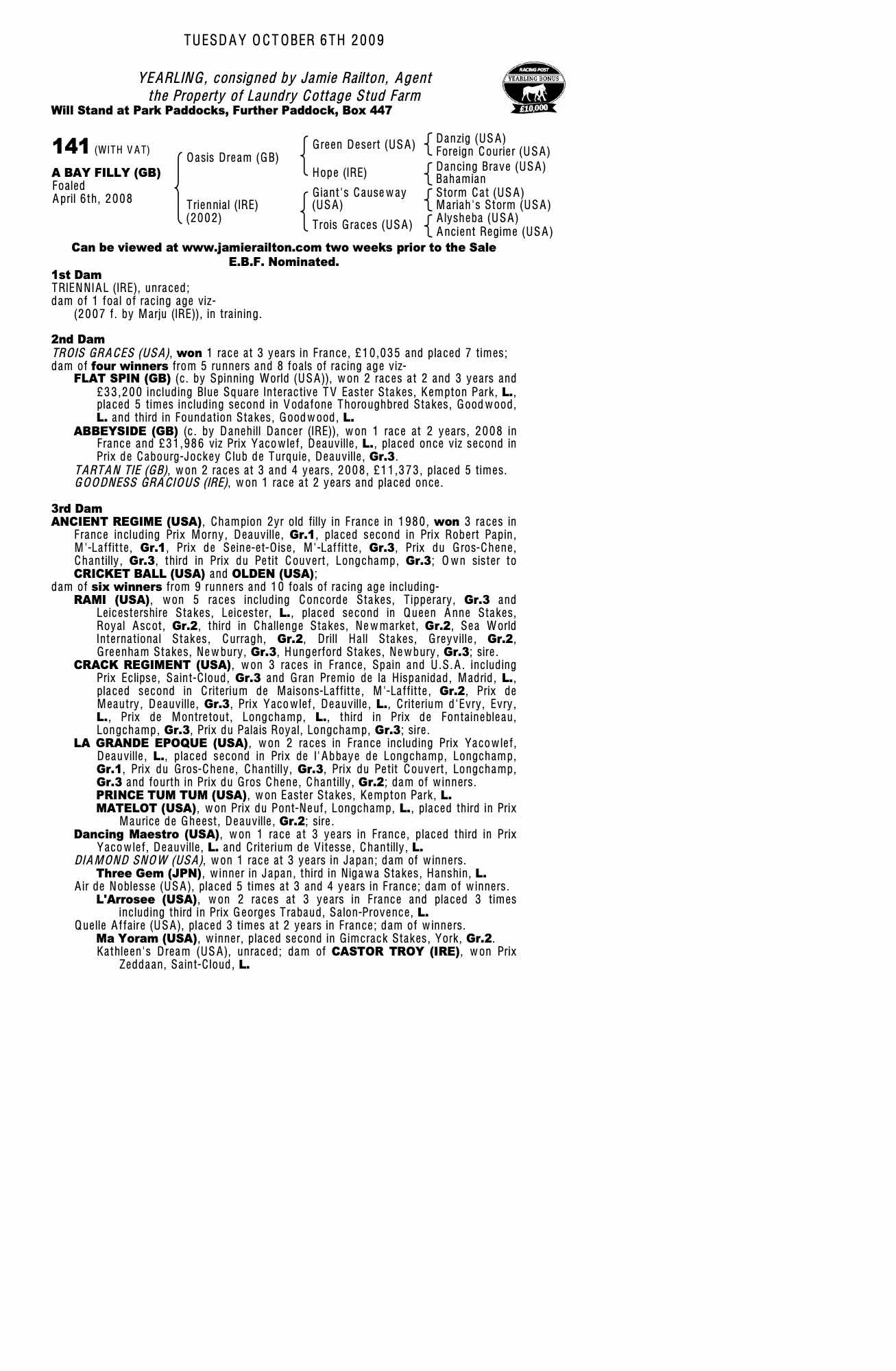 October Yearling Sale, Book 2 2008 lot 1002 F. by Marju (IRE) 2007, Jamie Railton, Agent=>Rabbah Bloodstock 25,000 gns