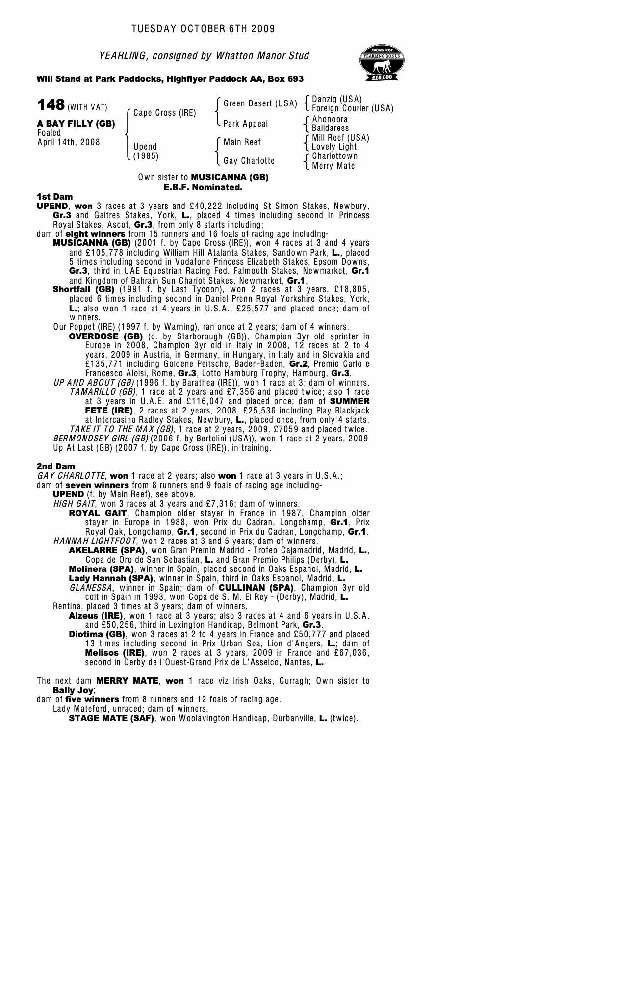 Consignor: Whatton Manor Stud