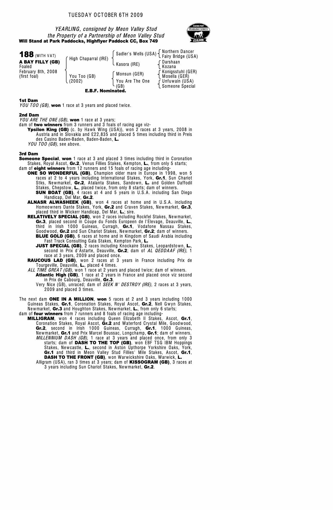 Consignor: Meon Valley Stud