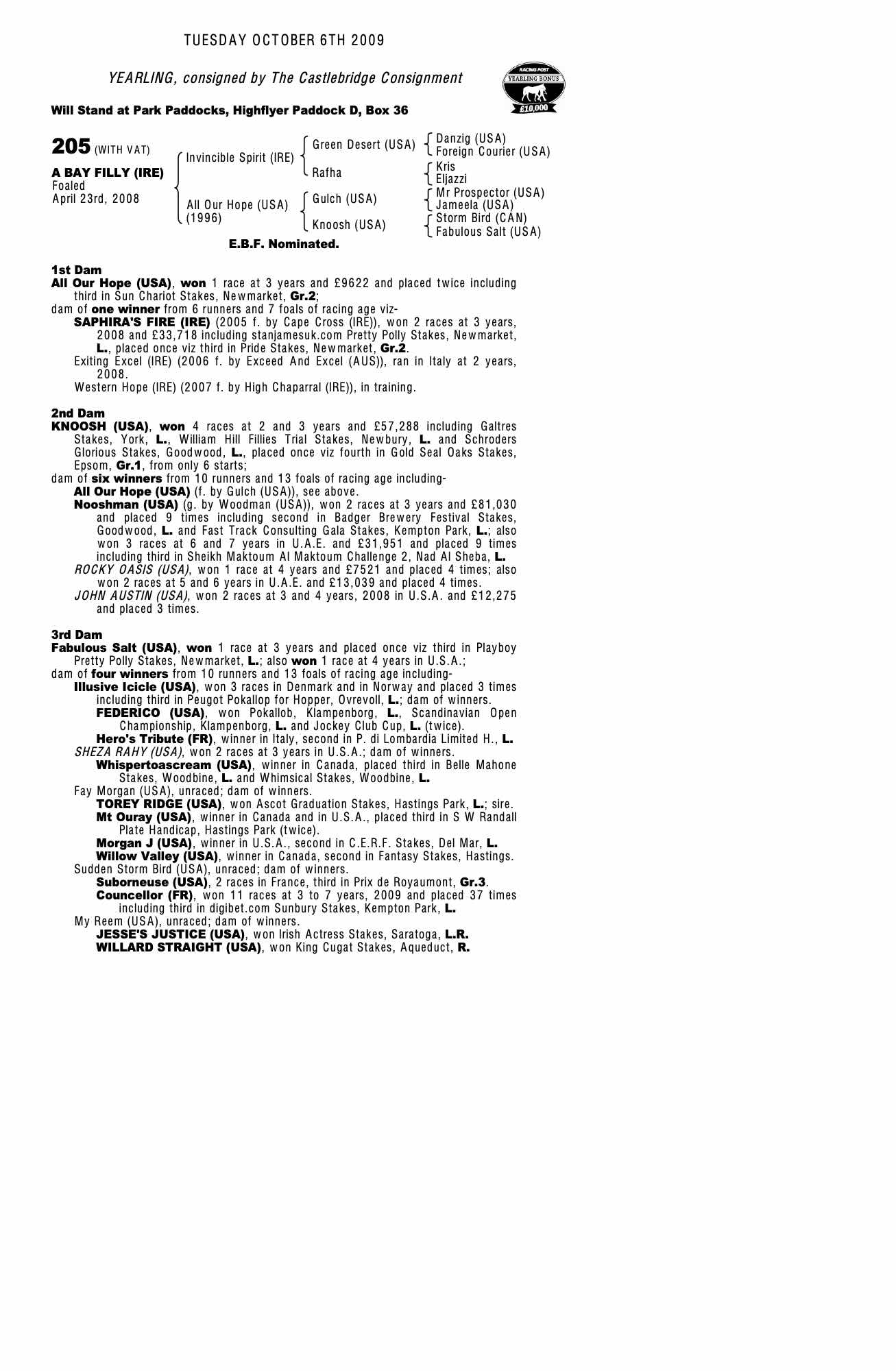 October Yearling Sale, Book 1 2008 lot 349 F. by High Chaparral (IRE) 2007, The Castlebridge Consignment=>S Dow 52,000 gns