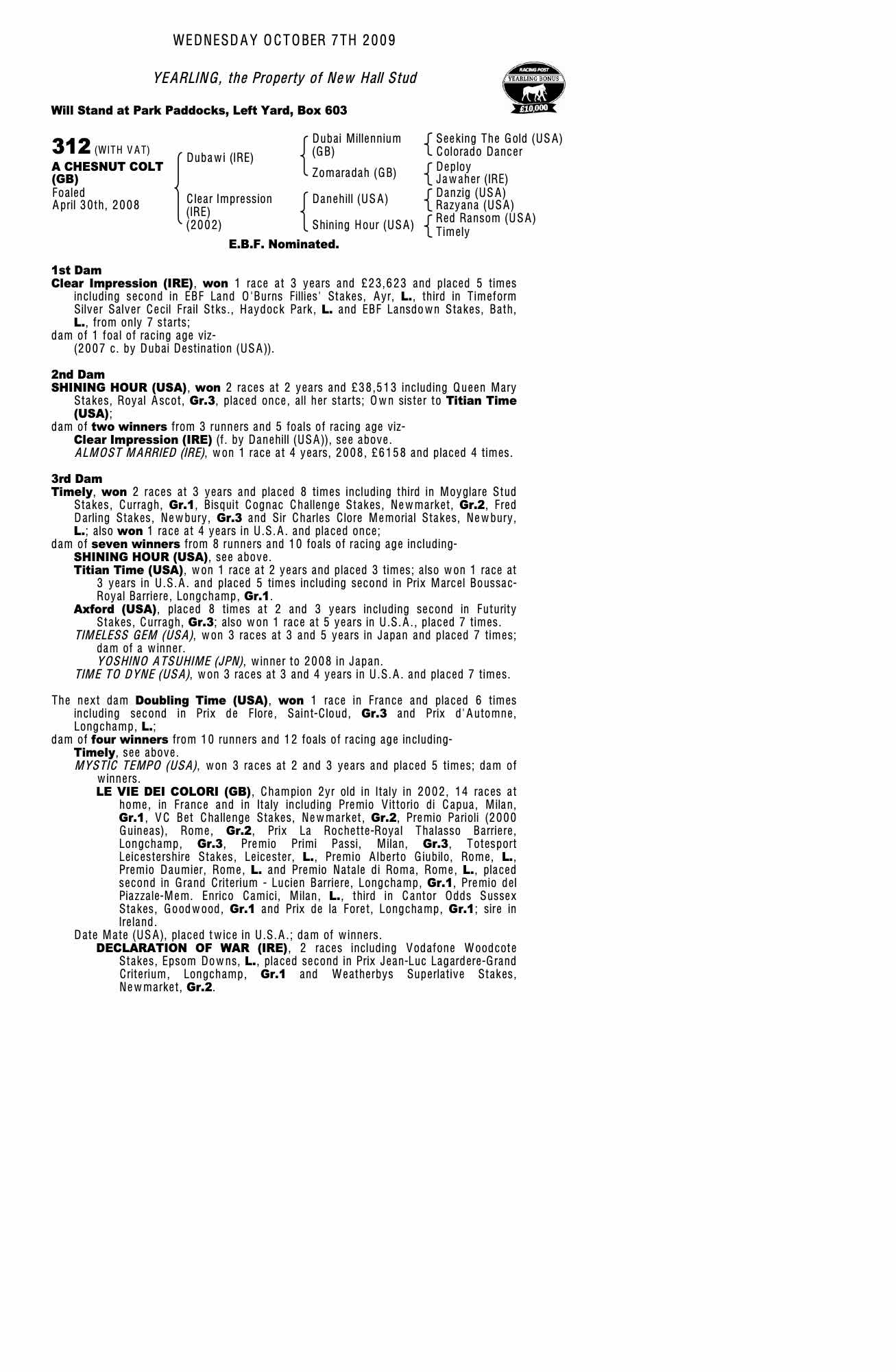 October Yearling Sale, Book 2 2010 lot 917 C. by Refuse To Bend (IRE) 2009, New Hall Stud=>Stuart C Williams 10,000 gns