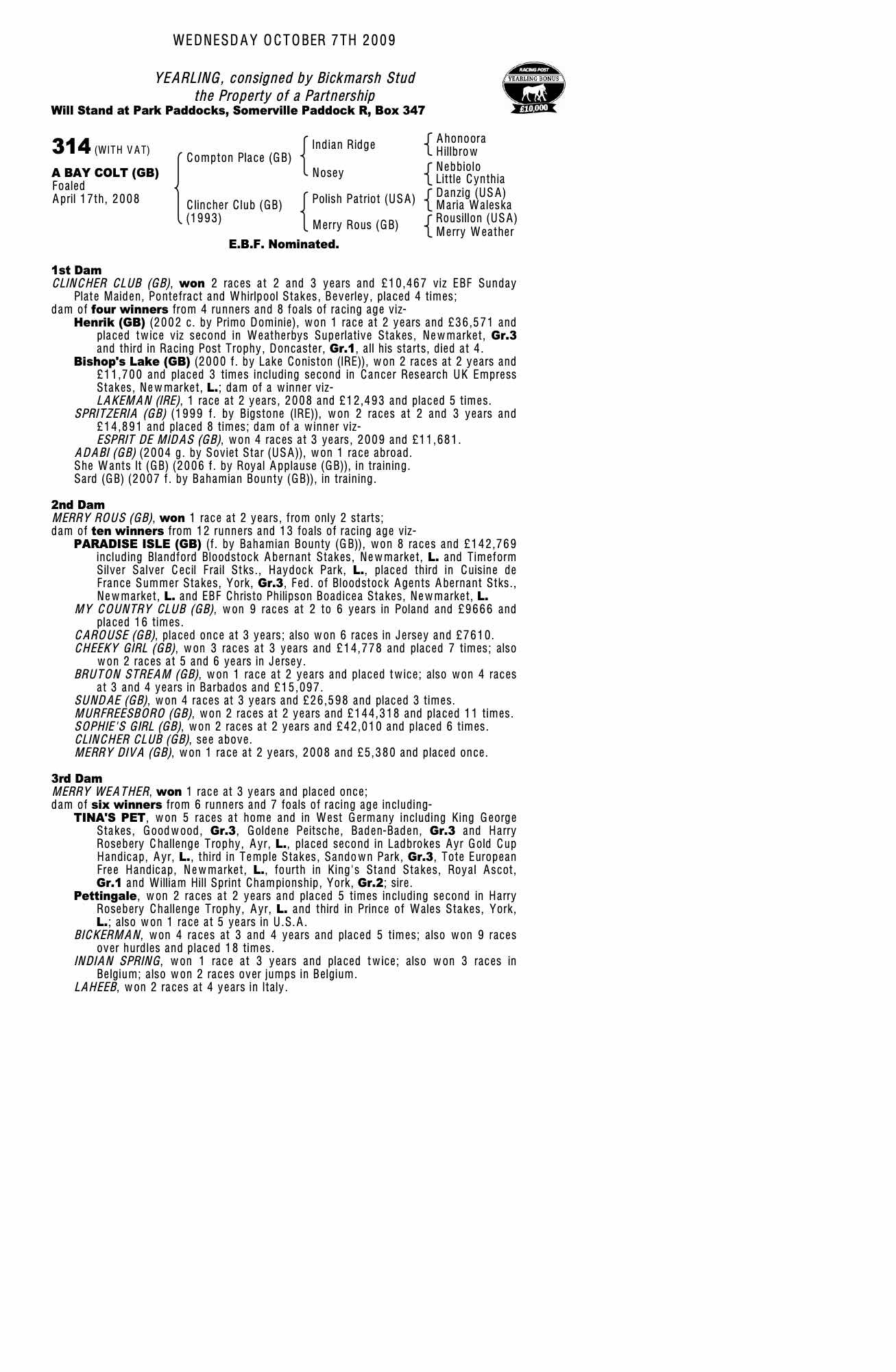 October Yearling Sale, Book 1 2008 lot 443 F. by Bahamian Bounty (GB) 2007, Bickmarsh Stud=>Angie Sykes Bloodstock 80,000 gns