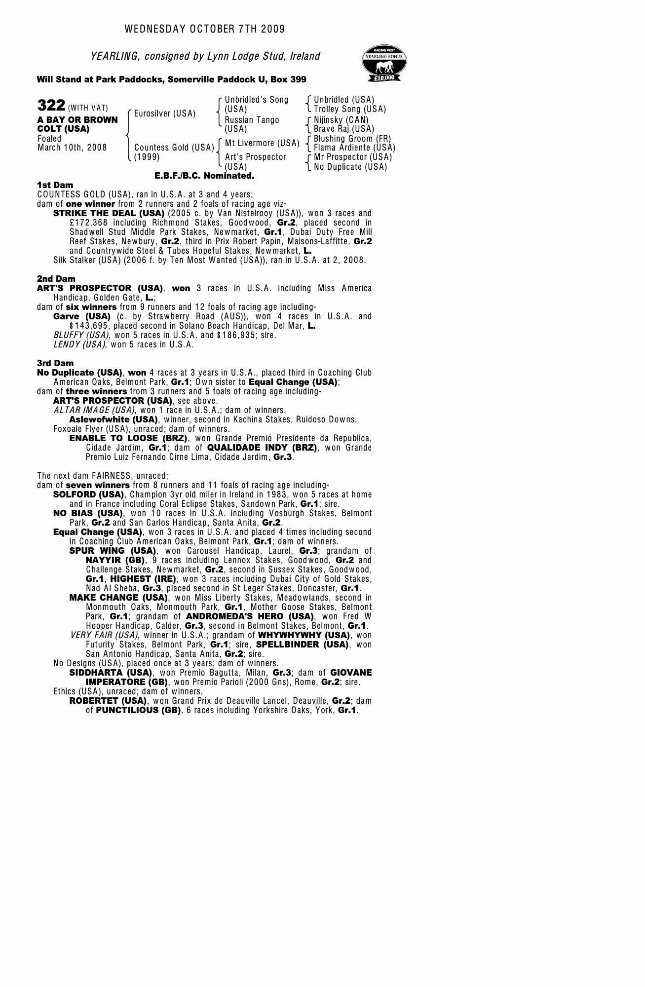 Consignor: Lynn Lodge Stud, Ireland