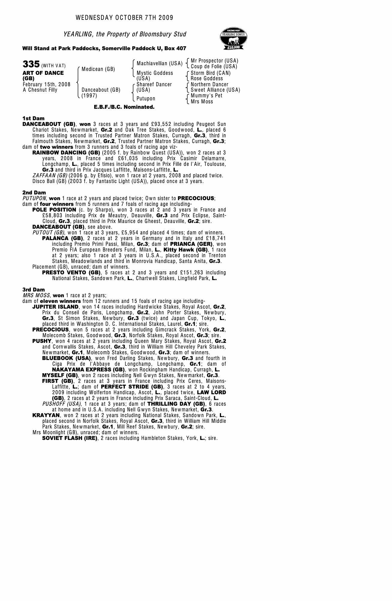 December Mare Sale 2009 lot 1753 Disco Ball (GB) (M. by Fantastic Light (USA)), Bloomsbury Stud=>Lot Not Sold 47,000 gns