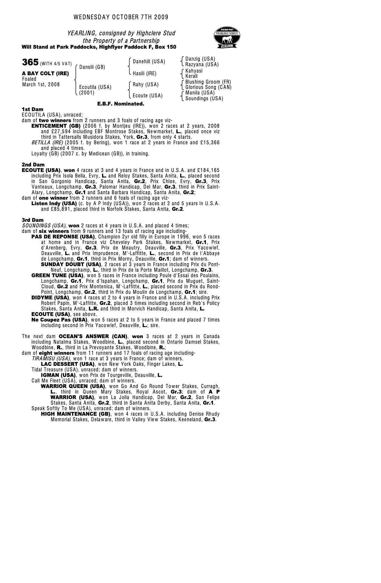 October Yearling Sale, Book 1 2010 lot 221 F. by Dylan Thomas (IRE) 2009, Marston Stud=>Winning Bloodstock Agency 23,000 gns