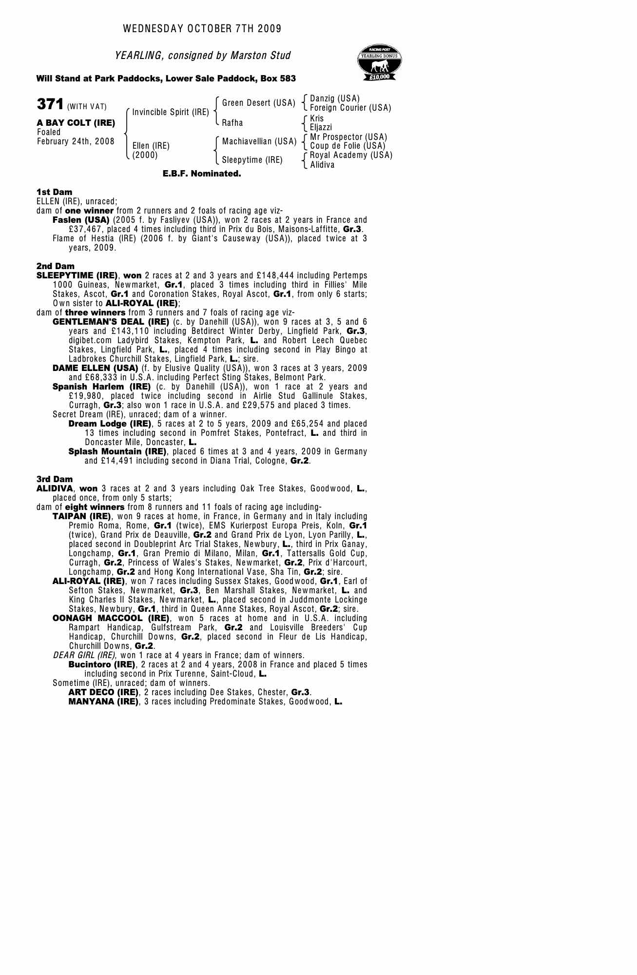 October Yearling Sale, Book 1 2010 lot 223 C. by Galileo (IRE) 2009, Marston Stud=>Sir Mark Prescott, Bt 50,000 gns