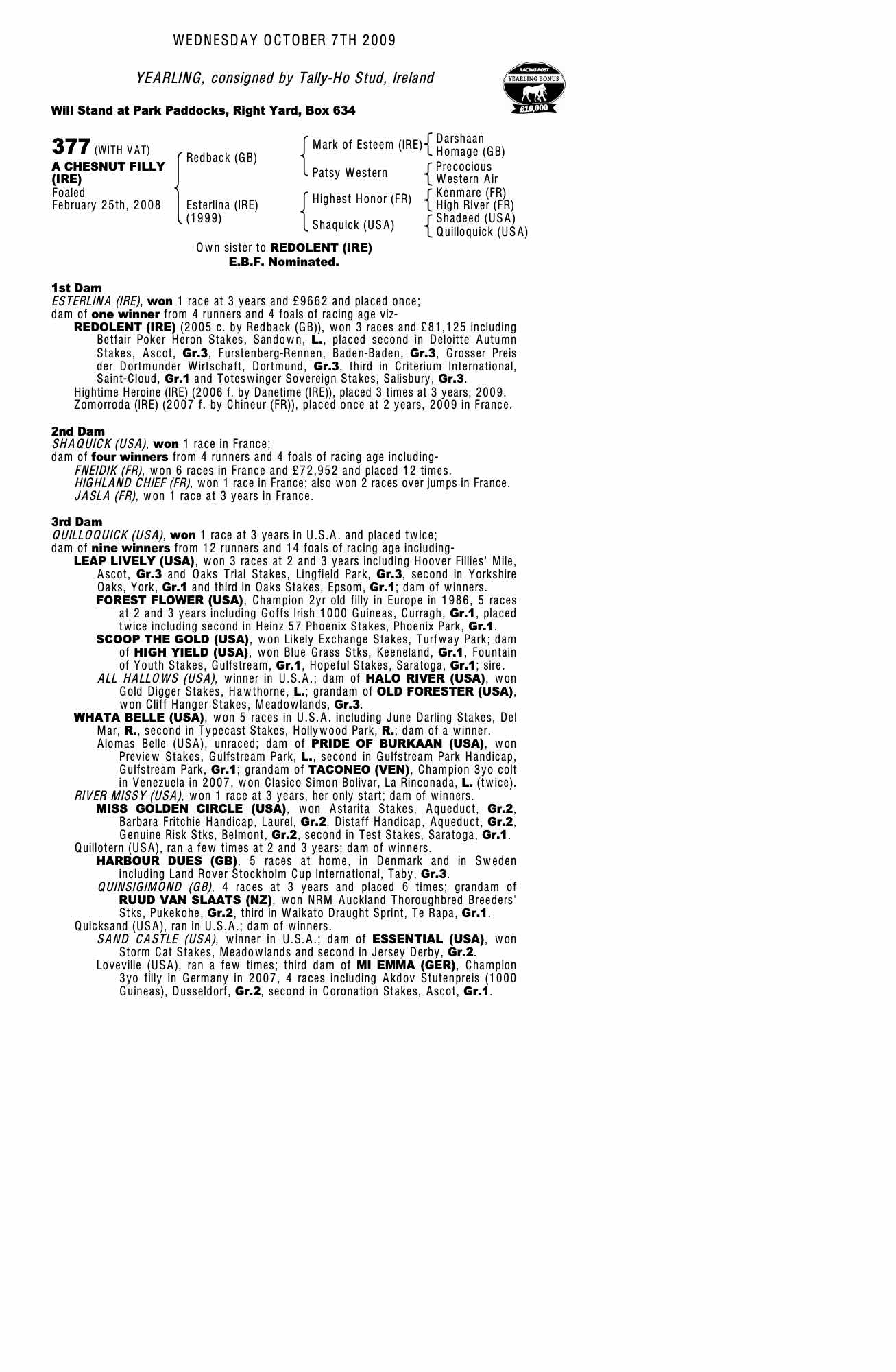 October Yearling Sale, Book 1 2008 lot 502 F. by Chineur (FR) 2007, Tally-Ho Stud, Ireland=>Vendor 40,000 gns